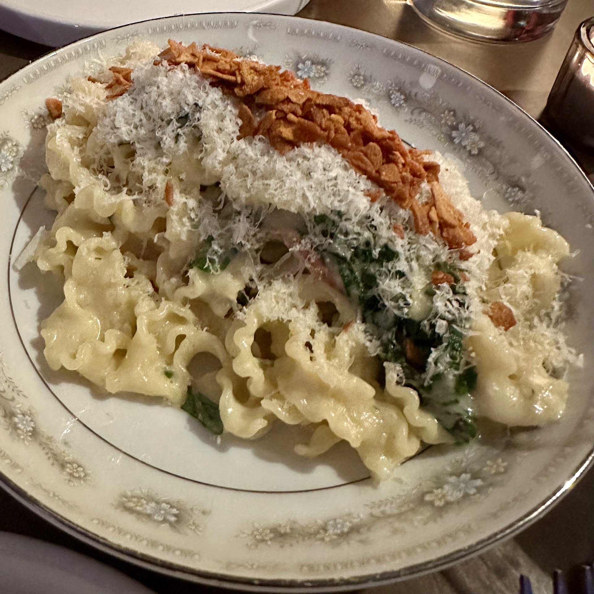 We ordered the Branzino as our main. The chowder upon which it was served was rich and delicious with plenty of clams, shrimp, celery root, and cream. However, as the branzino was cooked perfectly, we were disappointed with the thickness of the filet. It was only about 1/4 inch thick, so we were basically eating skin.