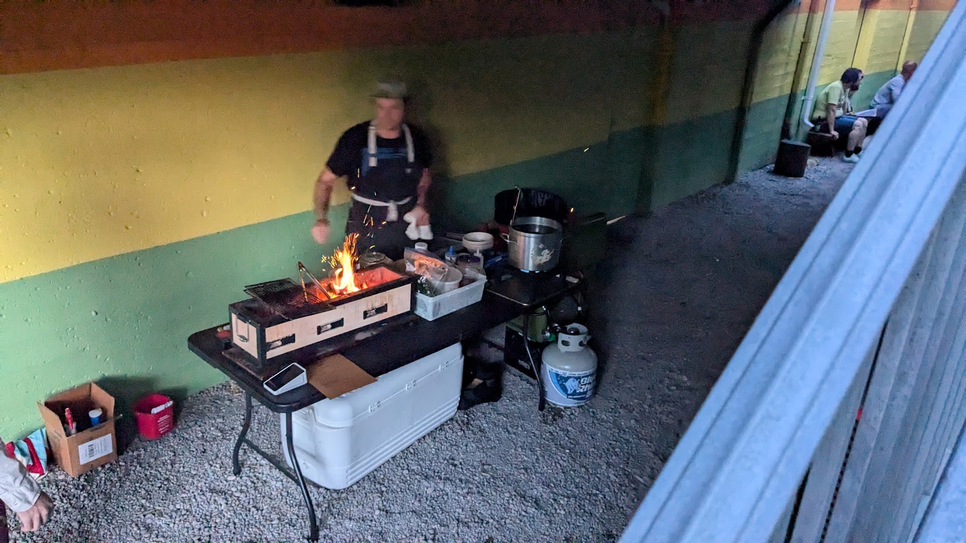 After placing our order, she asked if we’d like to open a tab or pay immediately. We left a card with her to open a tab. Then she explained that we’d need to walk our order receipt to the kitchen window which was in the next room. We ended up sitting in the second room because it was entirely empty. And not having any high chairs, I wanted my thirteen month old to be able to exist and not annoy fellow customers. (The first room had a few tables that were full and the patio had a set of steep stairs leading down the hill). There was another family with kids who were playing pool, so this place obviously attracts all ages.