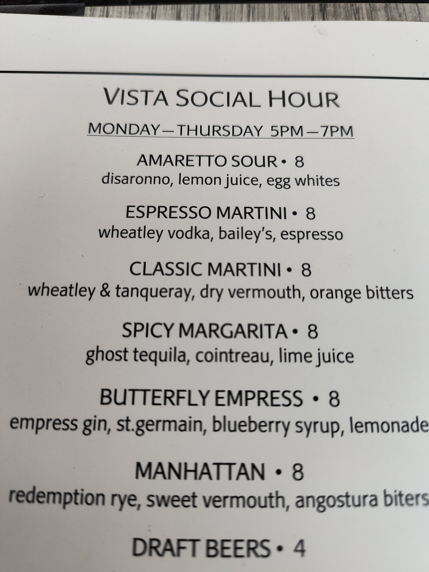 Read moreCame in after dinner. Saw they had a classic martini, which is one of my favorites. I ordered it but specified that I prefer mine 2:1 gin to vermouth. The bartender asked "dirty?". I responded 'no, with a twist', which seemed odd considering the menu has orange bitters which is normally not done in a dirty martini. I then watched him pour vodka in a shaker that I hoped wasn't mine. It was. It wasn't terrible, but, the default for a martini should be gin...