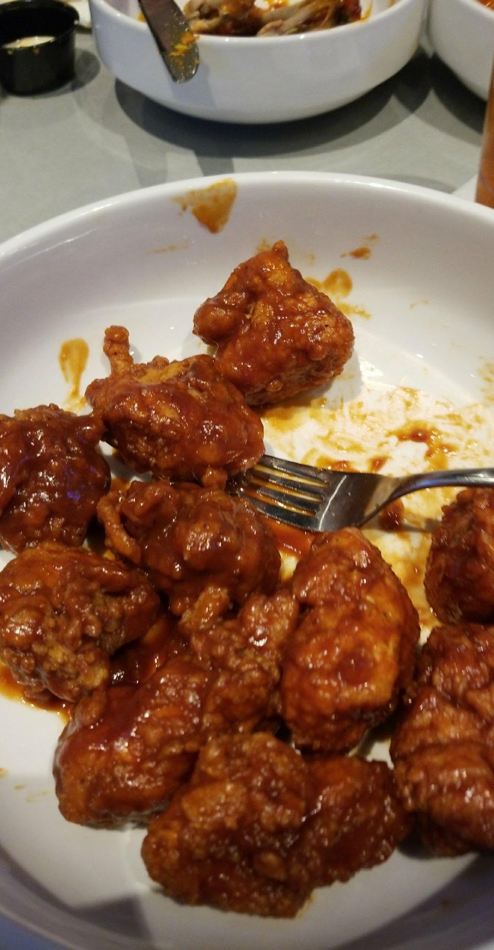 The good: the wings here most of the time are better than what you'd get at BW3s. The potato wedges are better too. Also, I'm a fan of the cauliflower wings (when they do them well which can be hit and miss). Overall, the food quality on most visits is far superior to the BW3s and not bad overall for a chain. Also, our kids enjoy playing on the tablets.