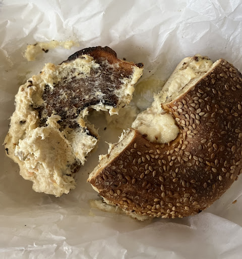 Read moreFirst time here. Place was immaculate and had lots of thoughtful details. Picked up breakfast and lunch to go. Ordered inside. Toasted french toast bagel w cinnamon raison spread was delicious. Bagel was slightly crunchy outside and soft and chewy inside. Spread was well balanced, not too much filling. Chicken salad sandwich was delicious and to my surprise came with a pickle spear and a small bag of chips! Taste of the chicken salad was on the sweeter side but overall pleasant. Smooth texture, not chunky. Leaf lettuce was fresh, tomatoes and red onion were sliced fresh and not sitting around w dull edges. All on a toasted kaiser roll. Slice of hazelnut chocolate cake for a family member said it was very good. Smooth filling, good flavors not just sweet sugar but could taste nutty and chocolate flavors on a flakey pie crust. Held up well hours later in the fridge. Tables were clean and chairs were slightly padded, comfortable and modern. Sat for a few minutes while everything was assembeled and packed. Asked for almond milk in a latte to go and asked about their plant protein to add to a smoothie for next time. Even the plastic cutlery is thoughtful; it includes a wet napkin and is branded with their locations and business name. On my way out sat at a different spot to check my items and look for my keys and looked like bathrooms were handicap friendly and large. Lots of seating options. Will...