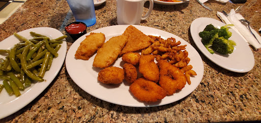 We sat down and were enjoying our drinks and meal. We were about halfway through the meal and my father found a SCREW in his omelet! It was a 1-inch self-drilling hex-head sheet metal fastener. It was rusted and the screw was caked with burnt-on grill grease. It was looking like a dirty cast iron grill pan. There was also hair or like a dust ball or something around the screw/in the omelet too. My father almost puked! The waitress came over immediately after it happened and went to the manager. We are so bummed we didn't get a picture of it. The plate was removed very quickly. The manager never came up to us to talk with us and just sent the waitress back over to us to tell us that our meal was covered. Then she walked away to take care of the rest of her tables and we just saw them talking about us and they told us they don't know how it happened but they were trying to figure it out. But instead of the manager trying to talk to us and mend the situation they just sat there talking at a booth. As we were walking away one of the ladies at the booth didn't even come near us. They just stayed at the booth and talked to us from afar. She told us sorry and offered us dessert. I responded no because after this experience we are completely disgusted and turned off by this place now.