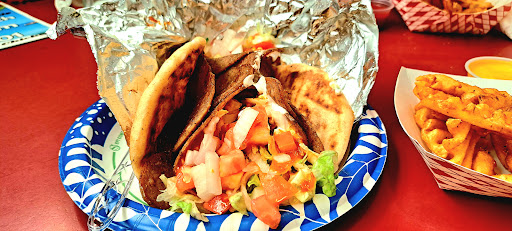 The number of stars that I give a restaurant represents the quality of the whole experience, not how fancy the place is. That said, it's a local neighborhood bar / grill but don't pass on this place. Service was friendly, helpful and very efficient. Atmosphere had a Jimmy Buffett vibe and my wife liked the background music (country). An older place but clean. But the star of the show was the food. First, they have a really good menu and options to choose from. It looks like they're known for their Bourbon Chicken. I had the Gyro (spicy, with the traditional gyro meat). I went with the larger, 1/2 of meat size, $9 (the 1/4 lb option is $7). It came stuffed with toppings and tasty Tizatziki sauce. The spice came from a siracha sauce on the meat, it was really good. Next time I'll have to try the "naked" option. My wife had a 1/4 pound cheeseburger, for $5. She loved it. We also ordered an order of fries, and waffle fries (with cheese). Both were excellent, they even provide you with a spray bottle of vinegar for those that like that. We do. Friendly service, great food at a super affordable price, you can't pass this place up! We look forward to stopping in again, I may have to try the...