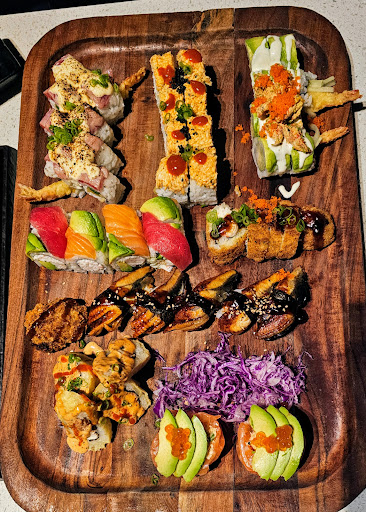 Food. The volume and quality of the food are both superb. I've brought multiple big eaters with me, multiple times, and we usually ordered around a dozen rolls at once, with the pacing being perfect. About as soon as we were almost finished with one roll, another was brought to us, even with things moving quickly. Nonetheless, the quality of every item I've tried so far is impressive. I don't consider myself a connoisseur, but with seafood, you can tell when you're getting not-so-fresh of food; everything tastes extremely fresh and bursts with flavor.