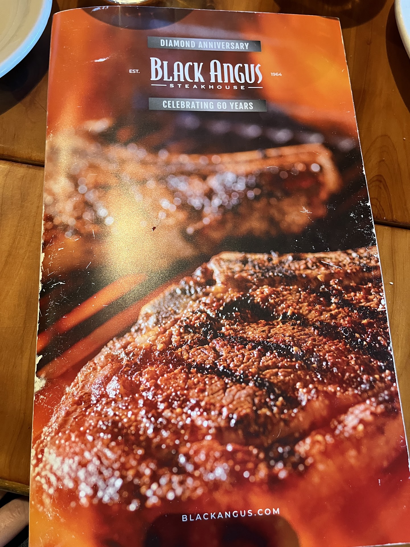 Read moreWhat happened to Black Angus? It has been years since I last ate at one. We were sat promptly for a Tuesday night at 6 pm. Then it went downhill. I don't know if they have staffing issues or if it was an employee issue. They brought us water, and we ordered our food right away, plus a drink. The drink eventually came. Our food came out after about 25 minutes after we ordered. Our dinner salads came at the same time. Our steaks were cooked incorrectly, and one was sent back. We didn't see our server the whole time the food was being redone. There are no offers for any steak sauce or other condiments. The manger brought out the redone steak. Prepared correctly the second time. Again, our server is nowhere to be found. Actually, no servers can be seen. We asked for a box, and we were asked if we wanted desert and declined. We got our bill, and the server disappeared again for 15 minutes plus. Our bill was incorrect, overcharged, and a soup I didn't get. Went to the front ask for a manager. Got our server who said they couldn't change our bill, only a manager could. They left and then came back with the correct bill. And stated " I would have caught that if I gave you the bill" they did give us the bill. And the kicker no manger came out. Then, another employee walks out of a room eating food at the front desk. I am in total disbelief about how bad it was. I don't know if Door Dash and others have made it where service is just not important. Or if the whole place is just a wreck. Overall, it was disappointing. My advice is to go...