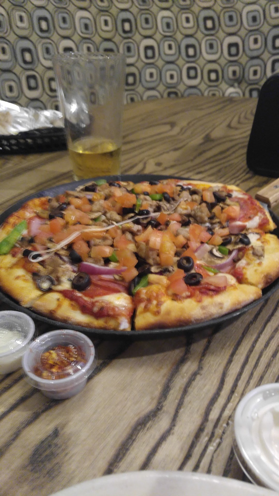 Read moreThe main issue here is that I order a pizza online at 620, got a message of approximately 640 ready time, sat waiting once arrived at 640 until 705 and it is 100 degrees. The person at the counter told me it would be about 8 mins. They have no AC inside.