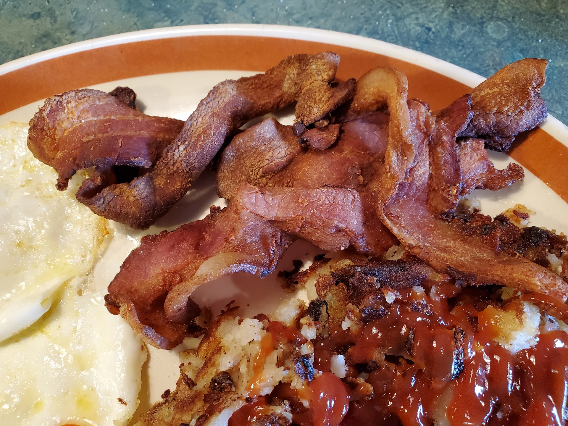 The eggs were cooked perfect...bacon was crispy just like I like...and potatoes delicious.