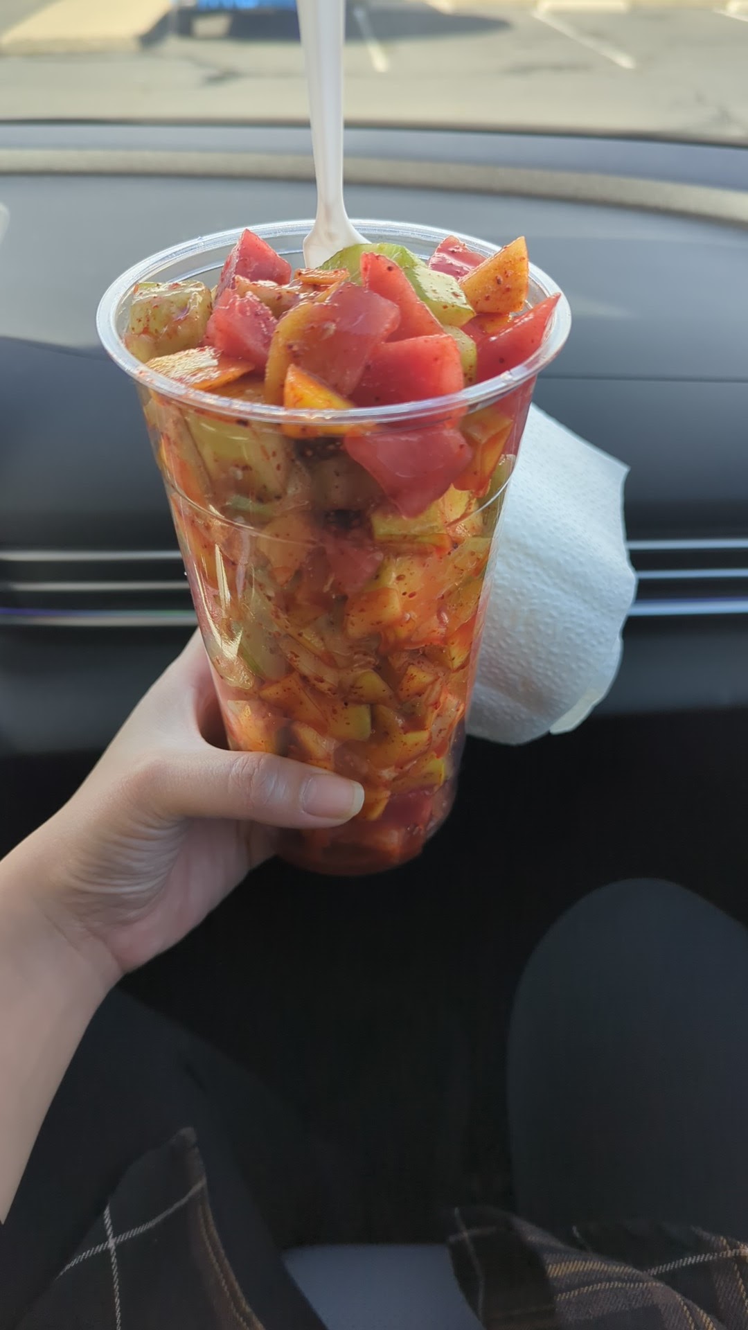 I think the corn needs more stuff in it. Than again I was maybe thinking it would taste more like elote with Cheetos on it so that maybe why I was a bit disappointed, but than I had the mangonada and omfg. It was the perfect summer dessert honestly. The freeze with the actually sweet mango drizzled in that spicy goodness. If youâre ever overheated and want something cool and delicious just go here seriously if they had alcohol added to that they would have customers out the door.