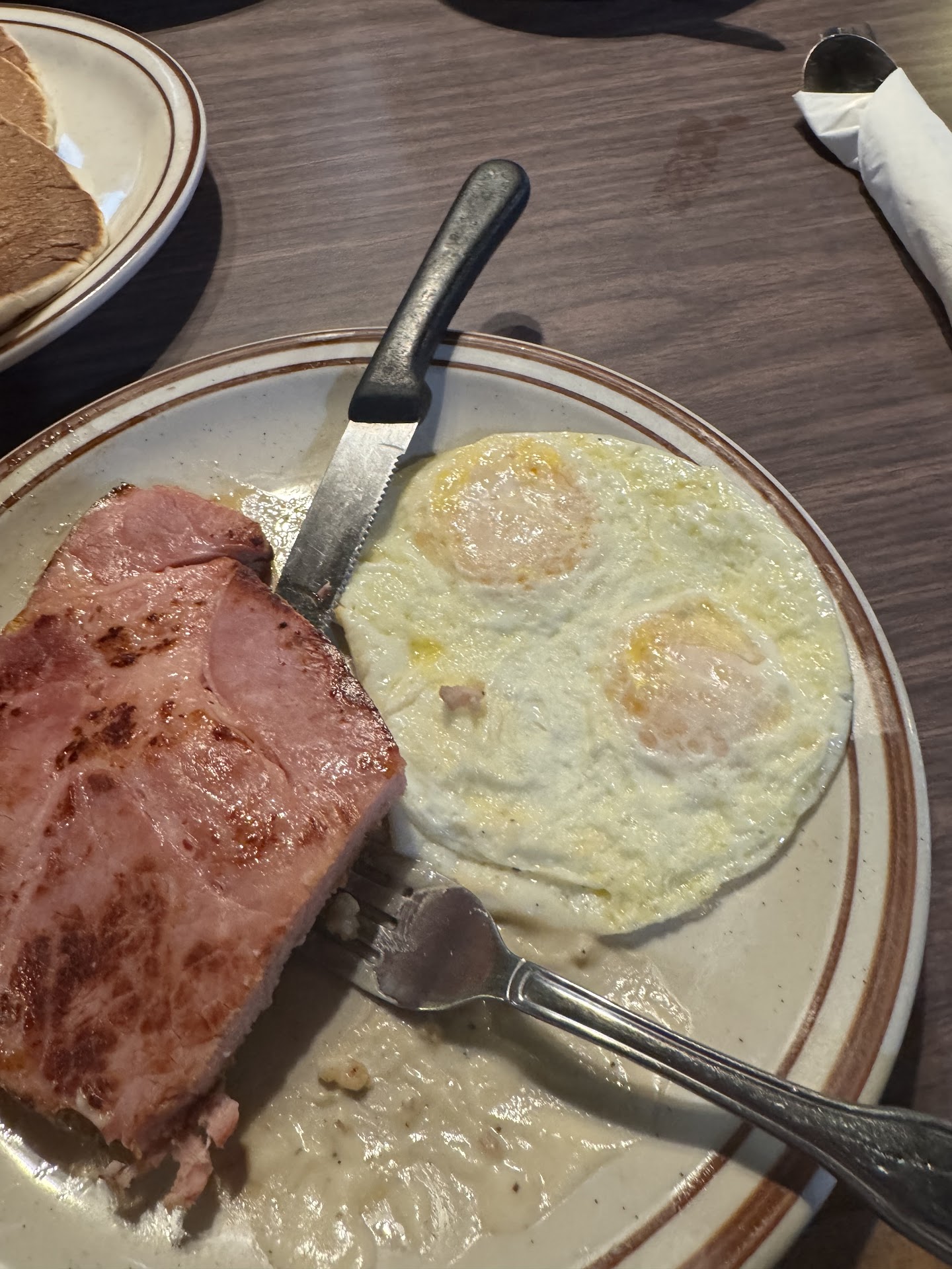 Now, letâs talk about the foodâabsolutely fantastic. I had a classic breakfast of eggs, ham, and a short stack of pancakes, and everything was cooked to perfection. My wife went with the Chicken Fried Steak & Eggs, which was hearty, flavorful, and exactly what you want from a comforting breakfast. And letâs not forget the coffeeârich, smooth, and just right.
