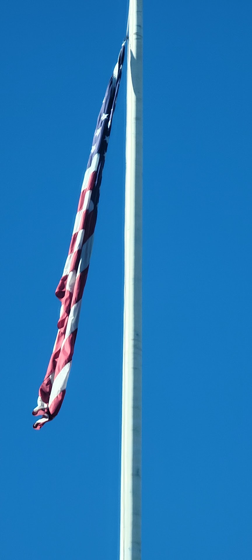 First of all, the flag should be at least 1/4 the height of the flag pole. I then talked to management again. Telling them that the flag was again not flying at the proper height.