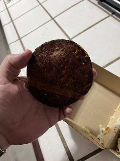 Tonight, the inside of the buns of all the sandwiches I ordered were blackened, and when I bit into one of them not seeing this, my mouth was filled with a disgusting charcoal taste. It's completely unacceptable that $24 worth of food was given to me in such an indigestible and nauseating state. I shouldn't have to disassemble a burger at the pickup window to make sure it was made right, but there's no way I'm wasting more time driving back and sitting in that endless drive-thru line.