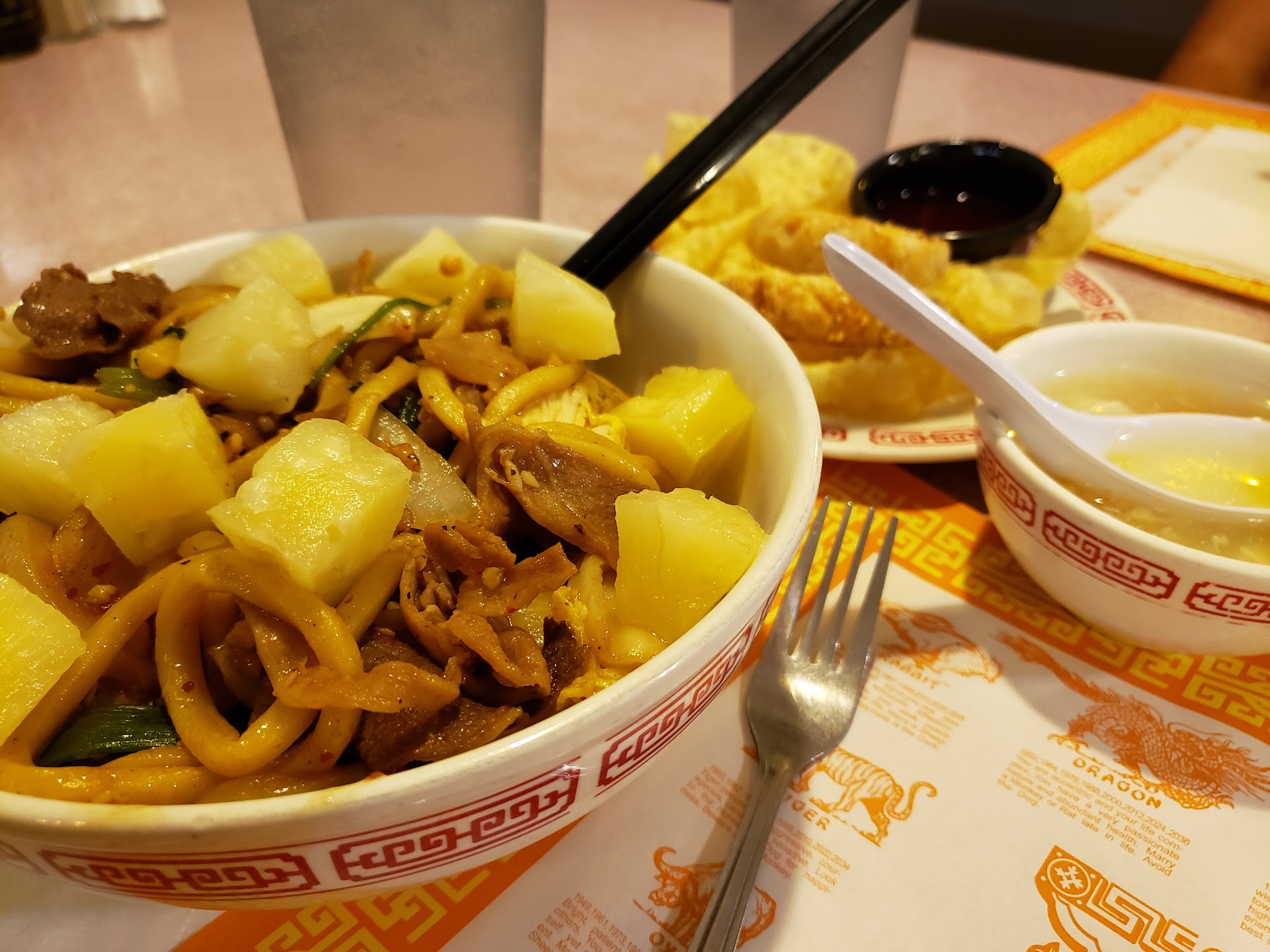 Star the First: Environment and Ambiance They earned this one by decorating a sad hole in the wall with heirloom quality art. I don’t doubt for a minute that the base by the door, the gigantic hand carved scenery on the wall, the abalone art, the carved golden coral qoi, and so on, were legitimate family treasures. They manage a perfect, comfortable noise level. It is family, having nice conversation. Thier superior decor, quality of food, and quality of service, attract only the best kind of society; read your Emily Post if you’re unclear what I mean by Best Society.