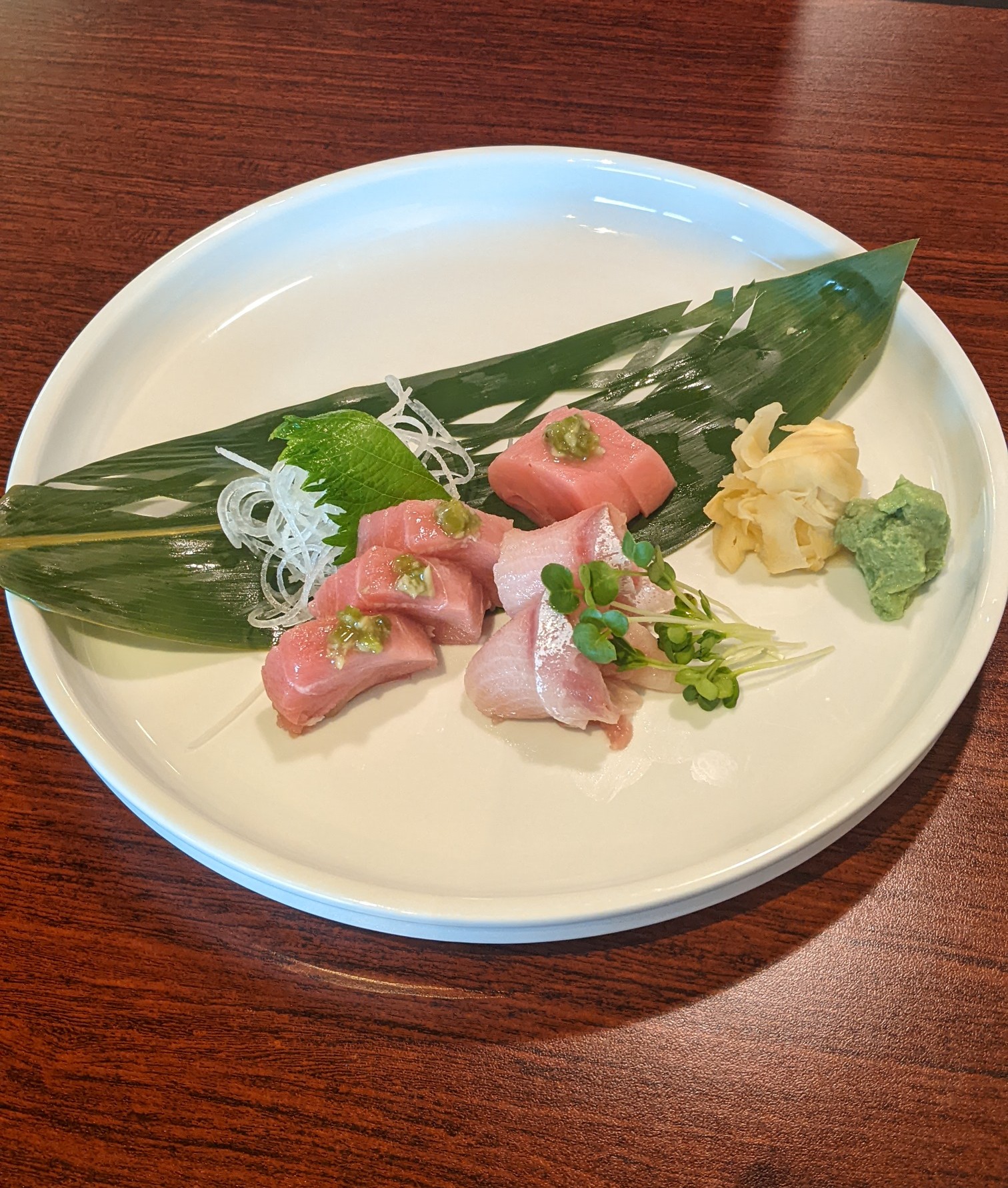 Hamachi sashimi and otoro sashimi (pictured) are always on point. The sushi chef does a great job with presentation and cuts.