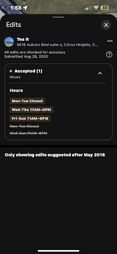 Read moreWas at Roseville for another Vball tournament this past weekend and decided to try this boba tea spot based on the ratings. I got the usual jasmine milk tea w/boba 25% sweet. This time, I decided to accept the mgr/owner's offer to replace the powder, lactose-free milk with whole milk. Big mistake. My drink had a peculiar seafood-like taste, with the boba being a little undercooked and hard in the center. I barely drank a few sips and had to toss my drink...1. I tried my daughter's tiger milk tea w/boba 25% sweet, which did not have the weird taste and tasted decent but barely any tea. The boba was similar, tad chewey/hard in the center, she and I gave it 3.5. The other drinks were from her teammates, who seemed to enjoy the drinks, although they don't drink boba teas as much. Overall, for the boba tea...