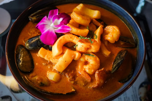 I had the Lomo Saltado ( beef filet) cooked in Peruvian spices, and soy sauce (gluten-free soy sauce is available) was absolutely delicious. This is traditionally made with regular soy sauce, so if you have Celiacs Disease, it is best to inform them so they can make it with the gluten-free soy sauce instead. Although I did have the cilantro rice, I learned that it is not gluten-free after having eaten some (it says on the menu there is beer in it). Steer clear of that rice if you have a gluten allergy and opt for the white rice that is traditionally served with it. It is one of the best dishes I have ever tasted and I highly recommend it. I also skipped the French fries because of this FYI. My husband had the seafood dish Pescado lo Macho, which was a spicy gravy covering fish, shrimp, calamari, and mussels. This also was an amazing dish, I would say 5/5 for both.