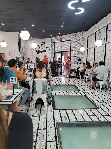 The place is okay. Definitely not worth the prices. The appetizers were nothing out of this world. Seemed like they were purchased frozen and then reheated. The egg rolls were better than the dumplings. Flavor-wise and quality for both, we've had way better. The sauces they came with carried the items. The drinks were good but not worth almost $7. Again, nothing out of this world. Cookies & Cream just tasted like chocolate milk. There were no cookies involved. It should have just been a chocolate milk tea. The brown sugar was good to me; however, my partner thought it was too sweet and was unable to finish it. I think it's just a taste preference there. That being said, as someone that has a dairy allergy, I was happy to have options! Even dairy-free whipped cream which tasted and looked like real whipped cream. Yum! The soups were pretty good, honestly. We came to the conclusion that if we returned, we would only get the soup as they were the best items they had. I got the Chicky Chicky. Super yummy. Dairy-free which was nice. I added one poached egg for $2. This was the only downside of the soup. The egg white was very undercooked and the yoke was actually cold, which led me to be believe it was maybe cooked in a batch earlier in the day, put in the fridge, and then added to the soup later. I've never had an undercooked poached egg with a cold yoke before. It was off putting. My partner got the Pork Belly Heaven. It was good. His only downside is that the pork belly wasn't what he was expecting based on previous experiences with other restaurants that serve similar soups. The pork belly was more so treated like chicharrones. That being said, it wasn't bad, just not what he was expecting. That would be a preferences thing as well. The ramen noodles had a good texture. The wait staff were very kind and accommodating. They took my dairy allergy seriously which I genuinely appreciated. They were also very knowledgeable of the ingredients used in foods and drinks, and if they weren't sure, they double-checked. I loved that. They seemed to disappear often into the back of the restaurant. It took a little bit to be seated even though there was no line and the restaurant was not busy at all. Once we sat down, the staff was very attentive and checked on us often. After we got our soups, I believe they checked on us once to see how it was and then...nothing. It was almost a tad bit too much in the beginning and then not at all in the end. We waited so long that we eventually just called a staff member over to asked for to-go cups for the soups and our check. No one offered to help us put the soups in the cups like other similar restaurants do. That's no big deal but it would be a great option to offer as some of us are not trained in doing something like that well. It resulted in us spilling some of our soup. Again, no big deal, but would be something they should consider offering. I did find 5 of the same short hairs, likely male, on my soup bowl and the to-go cup. I don't have hair like that and neither does my partner, so I would suggest hair nets moving forward. Luckily, I caught the one that was about to fall into my soup in the bowl that was served to me before it fell in. I did not find any in the soup itself. The floor needed to be cleaned as there was food under our table when we arrived and there was also food on my chair. Overall, not a place we would likely go out of our way for again, but...