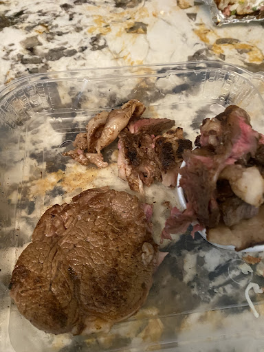 Read moreMost of the food was pretty good. My adult daughter's alfredo sauce was a little weird, imho, but she enjoyed it. The real problem is that I ordered a Prime Rib sandwich and tasted the not Au Jus which was clearly french onion soup (see pictures for those onions) and didn't taste the sandwich but packed it up for home. Had I known what was served to me, I would have sent it back. Keep reading. The next day, I was shocked to find overcooked gristly roast (I never heated it). It was dry and full of gristle. It looked and tasted like a cheap cut of roast that someone didn't know how to cook. It 100% wasn't prime rib. I make Prime Rib at home regularly, and I'm not very good at it . It's still always tender and full of flavor even though I still overcook it. This was roast. Cheap roast. This was completely unacceptable. Why are they serving something and calling it something else. I was not just disappointed but also a bit angry. I felt completely duped. I should've taken a bite while at the restaurant, but I was full from my salad and bloomin onion. In the end, it's still on Outback for being 100% deceptive. I feel ripped off. I ended up cutting up the meat and giving it to the cats outside. That's an expensive treat...