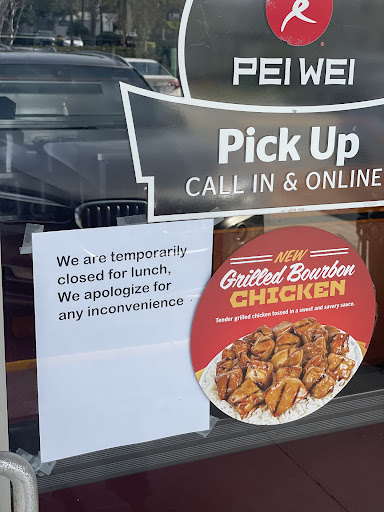 Read moreI wasn't impressed with the food. It's been a while since I've eaten at Pei Wei, but I remember it being flavorful. Unfortunately, the meat wasn't of a good quality, as I purchased the beef with broccoli. I originally wanted the Korean barbecue, but it was listed as spicy. I had my 2-year-old with me, and he loves broccoli, so that's why I purchased it. The rice was not fresh, it tasted like old rice, and to be quite honest, I'm not really fond of rice, so it has to be cooked well for me to even want to eat it. The beef was really chewy and fatty and it barely had any sauce on it all the sauce went to the bottom of the rice and it wasn't that flavorful and the broccoli was undercooked so it was very hard for my grandchild to actually chew the broccoli but he likes broccoli so much he endured it other than that the service was great I don't remember the gentleman's name but he was super cordial because I had ordered from the wrong location as so with that saying I came in looking for my order and it was not there he explained to me that his location can be confused with another location which is quite a distance down the road so he canceled that order for me as a matter of fact I probably need to follow up and make sure that I was refunded that money because I paid again at this location I'm going to try to give it another chance as it is in close proximity of my new home and I consider it healthy food rather than eating McDonald's or Burger King if I'm out with my grandchild I would prefer him to eat something of substance instead of the standard hamburger and fries not to say that I don't give that to him periodically but i feel like a better person if I'm giving...