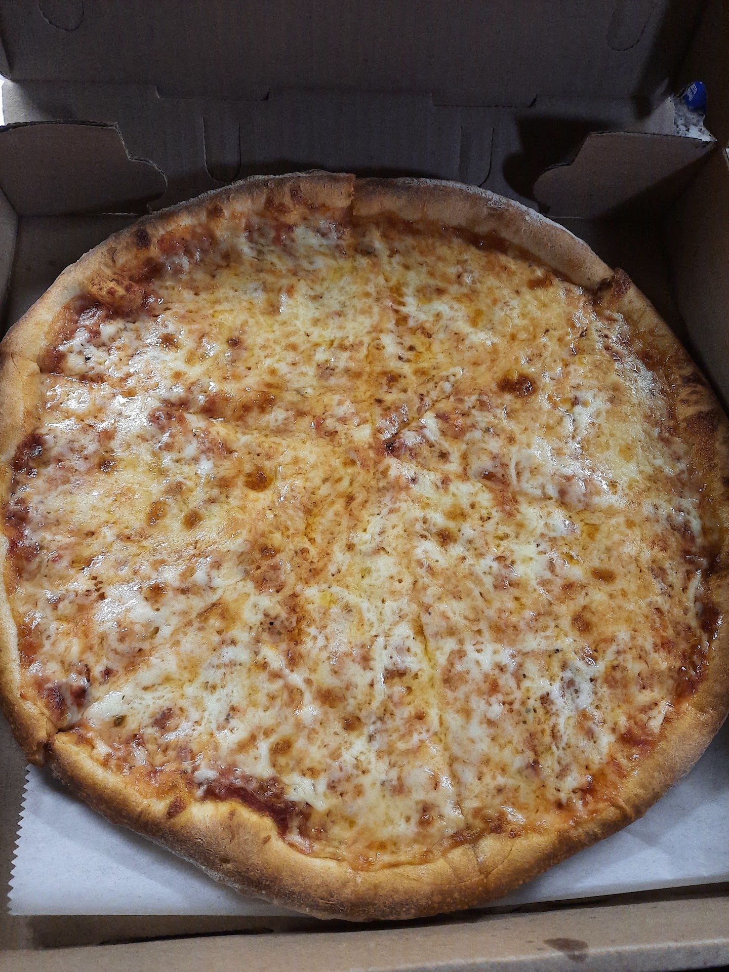 Came in at dinner time, ordered over the phone, while I stood outside. I Ordered a large cheese with mushrooms for $21 (yikes). Spoke to the cashier directly (masked) at the door--she said it would be 15 minutes and she'd bring the pizza out front.