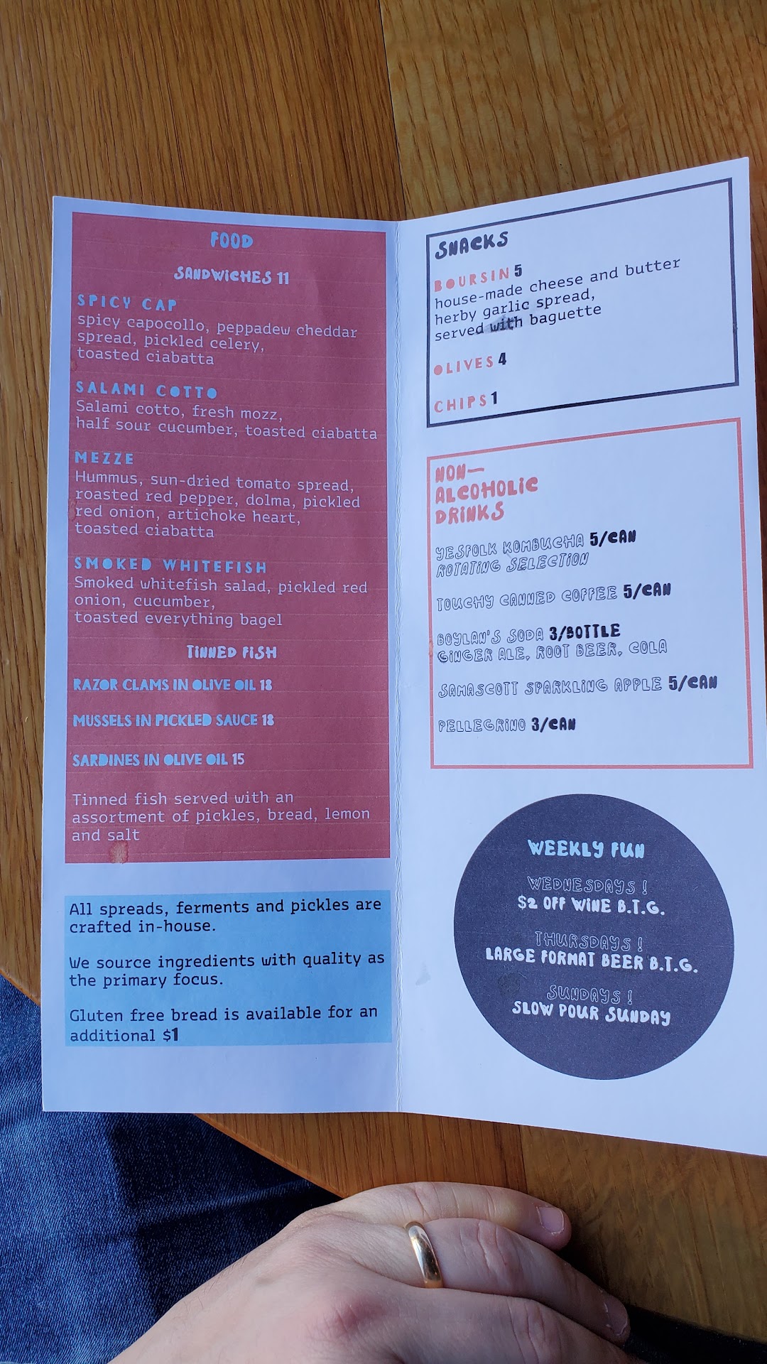 Read moreGreat neighborhood institution. Local drinks and food is highlighted. They have great food in addition to an amazing drink selection. They have beer, wine, and local non alcoholic drinks too. We got the spicy cap sandwich which tasted great. The mezze sandwich was like have a a great middle eastern app spread in sandwich form. They have cozy places to sit and chat with friends. The vibe her eos cool and chic and the staff is really friendly...