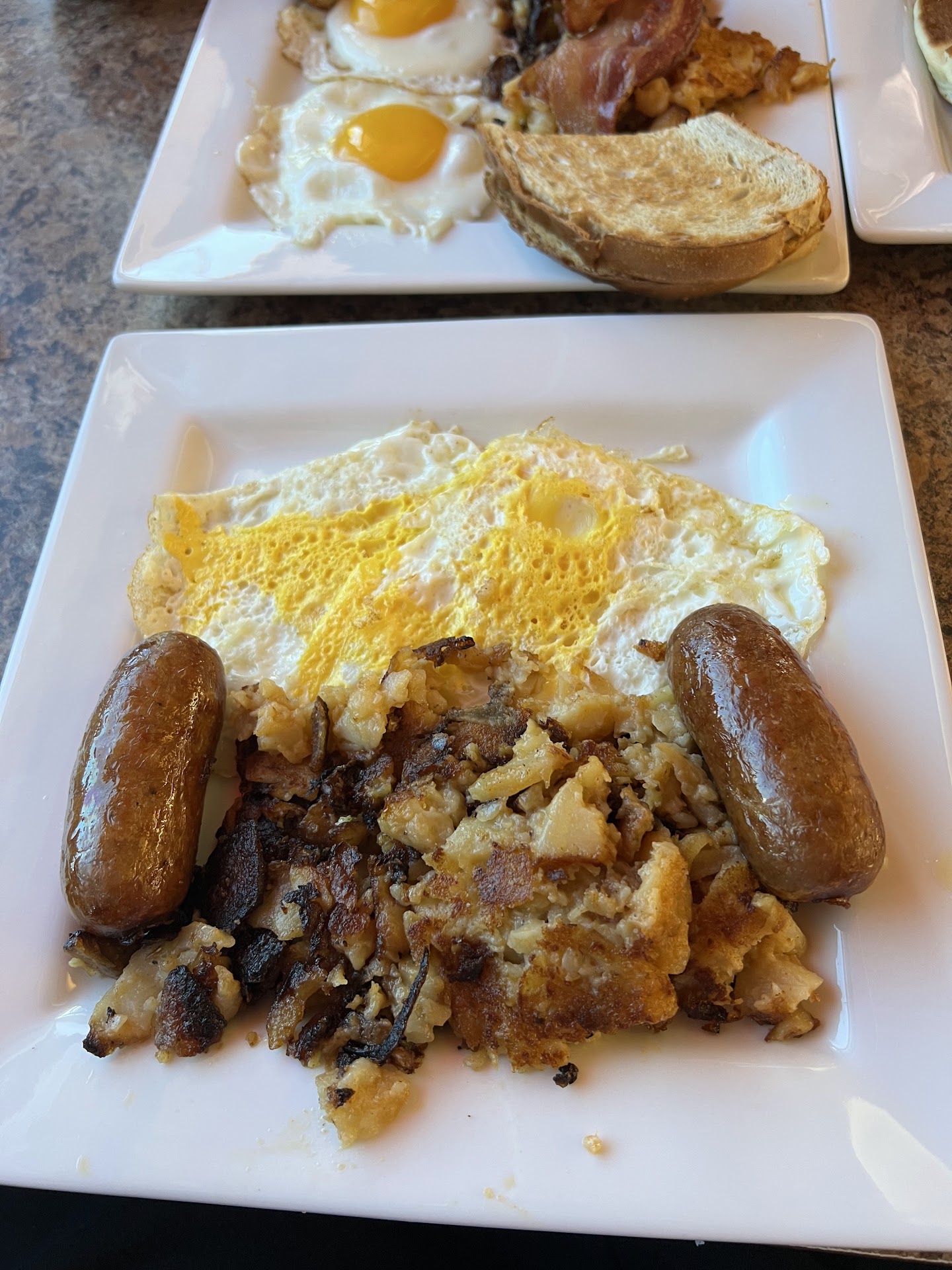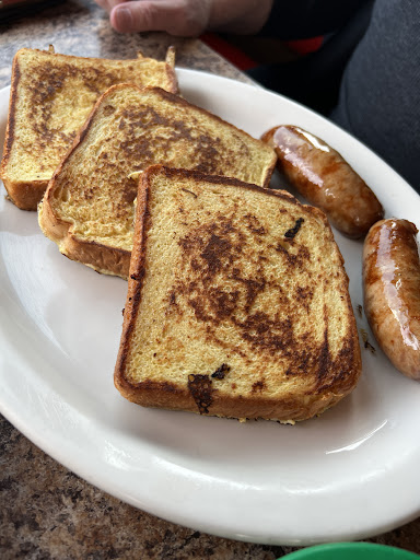 They offer a wide selection of breakfast and lunch items; since we were there for breakfast, we chose the huevos rancheros, french toast, and a side of sausage. The huevos came with two eggs, a pinto bean chili, rice with peas and bay leaves, tortilla chips, and a side of sour cream and salsa. It wasn't fancy but it was good and the eggs were cooked to my liking: over medium. The side of sausage was two large, plump links and tasted good. The menu states it's made from homemade challah bread; it definitely is not. While good, it lacked any spices such as sugar, cinnamon, or nutmeg.