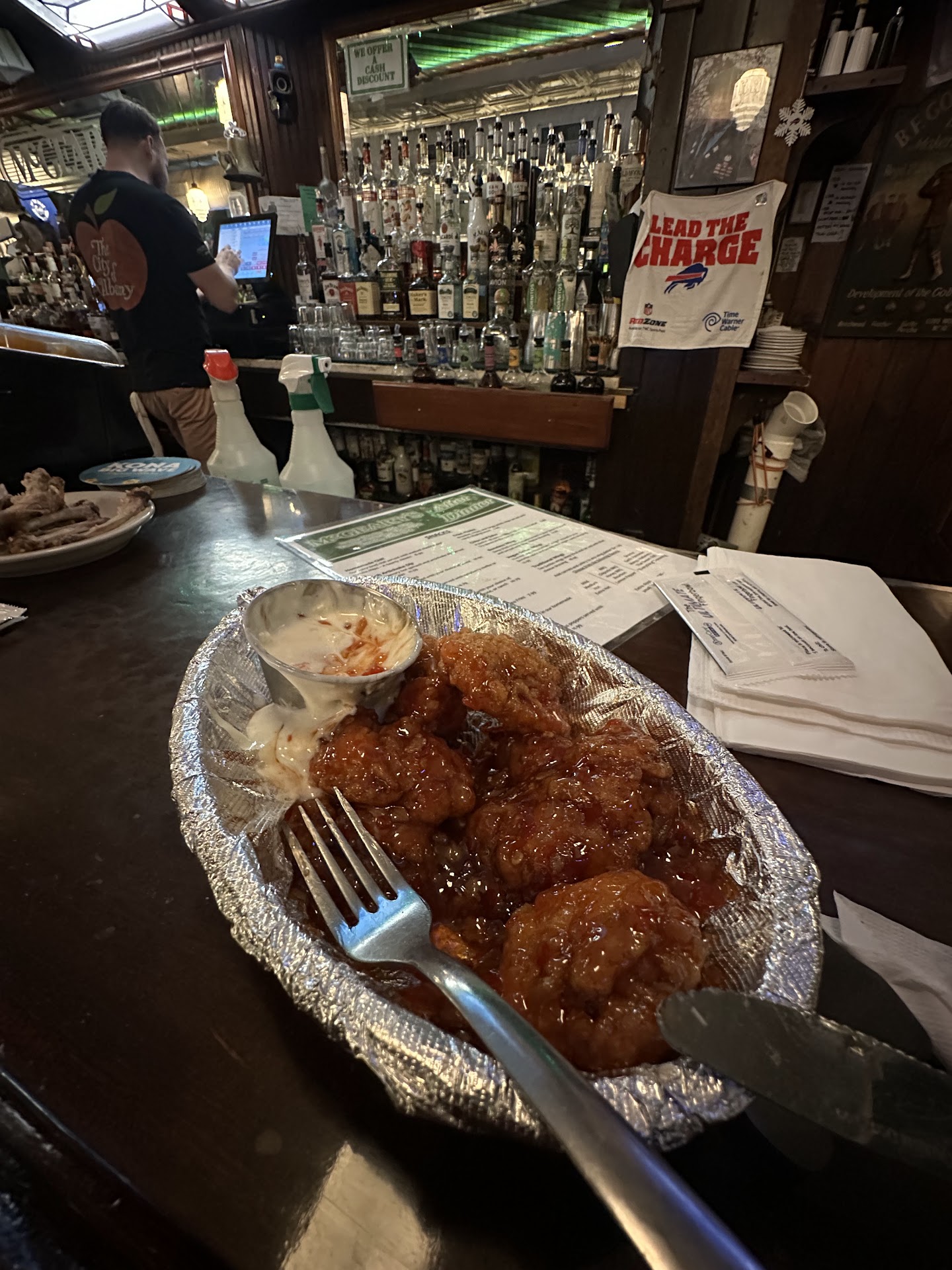 Our waitress was very disappointing. When she came over to take our drink order the beer menu was rather large so i changed my beer choice twice. I made sur to tell her that if my beer was poured leave it be. Then i found another beer of choice and went up to bar to see if i cud change it. She did after rolling her eyes and responding to me final answer!. When I did get my beer it had a funky taste and smell to it. So i brought it up to bar and asked for the same beer in a bottle or can. She seemed very agitated. She brought beer over to table and slammed it on the table and walked away. I went up to apologize to the male bartender and explained to him wat had transpired between me and waitress and explained to him that the beer was skunky. He apologized and assured me that was not a problem. The food was served by a server and not once did waitress ck on us. After paying the bill on our way out i let the waitress know how disappointed i was with our service particularly with her. The server was good bartender was good. I explained to her that her tip wud have been better without her attitude. Her response was you dont have to tip me. I responded fine. I went back to table retrieved the tip and passed it on to bartender cause he took the time to explain the issue with the tap beer i orderd and repeatedly apologized. I have been there before and wud probably give another try but was really irritated with our waitress. I failed to get her name but im sure she would not have given it to me if i had asked. Oh last thing, i asked for extra crispy wings and they were not even close to being extra crispy. I didnt wanna bring that up to waitress for fear of wat she might have done to the wings if i...