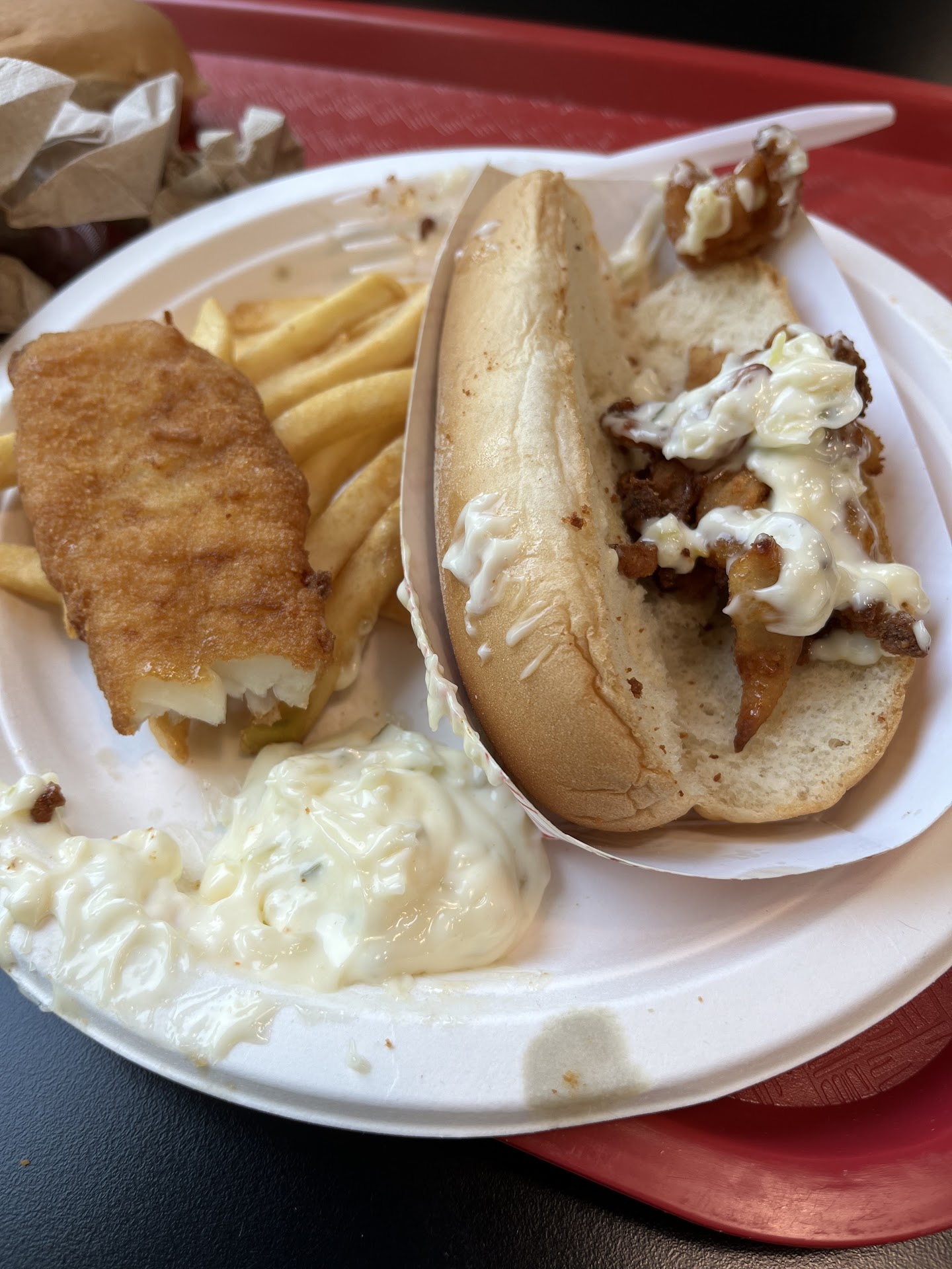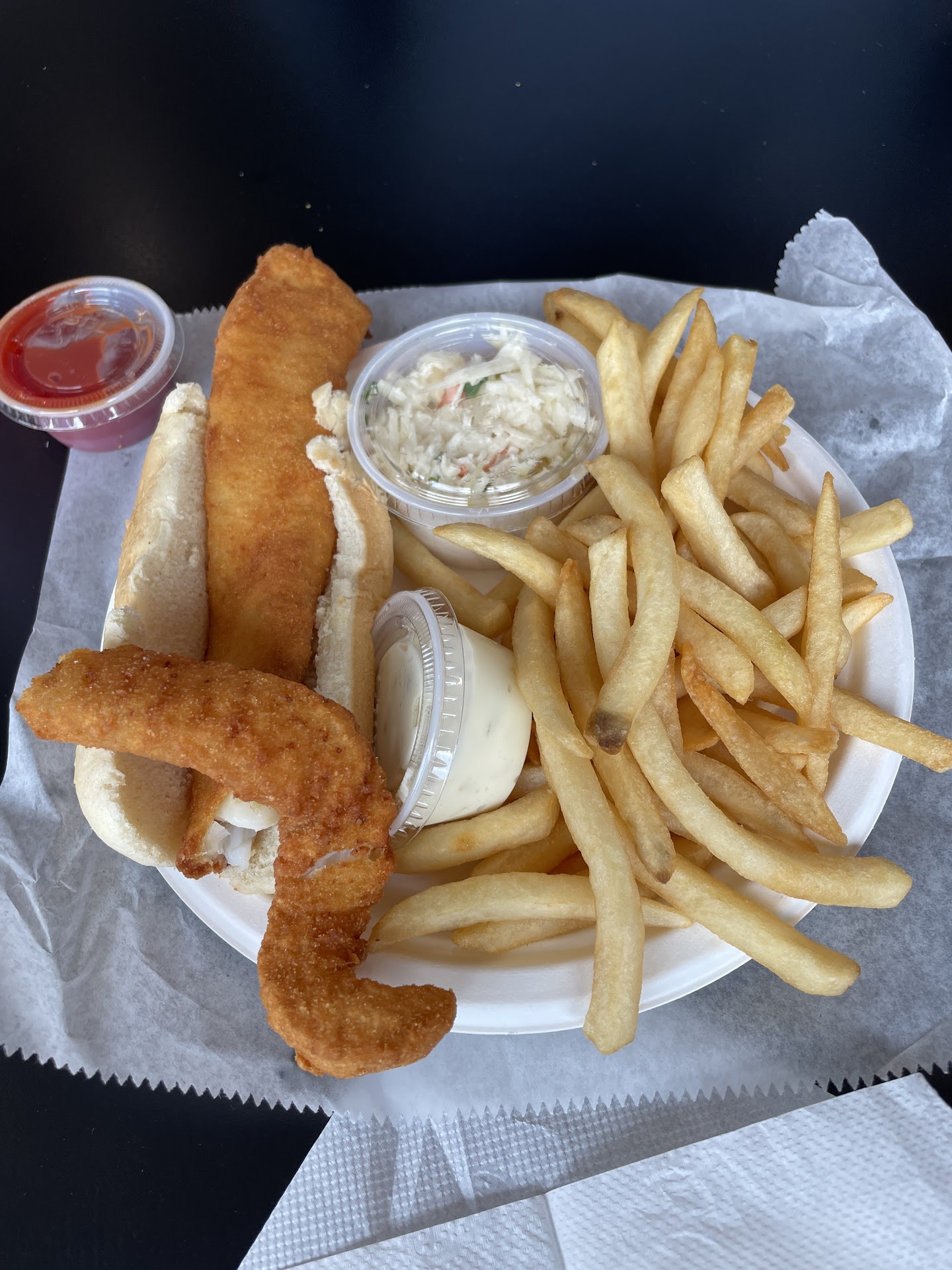 Read moreIts been years since we ate at a Ted's Fish Fry, and now I remember why: It was a below average meal. Friday night, 5:15pm, a steady line, so it should have been the freshest food coming out, right? Not. I got the seafood dinner, and my wife got the fried clam dinner. The fries were old and barely warm. The clams on both plates were unevenly cooked, and some parts were undercooked, stuck together and doughy (yuck!). My wife's coleslaw had a strange plastic taste and did not look like my slaw, so that went into the trashcan. Then they throw an old, stale HOT DOG roll on the side. WHY? Who eats that? On the seafood dinner, the small butterfly shrimp were a frozen product like from the local grocery store, not fresh shrimp. The fish was decent, and I will say that the scallops were terrific. The restaurant was clean, and that's the only reason it got 2 stars instead of 1. For $36, you expect a better fish meal, especially if that's...