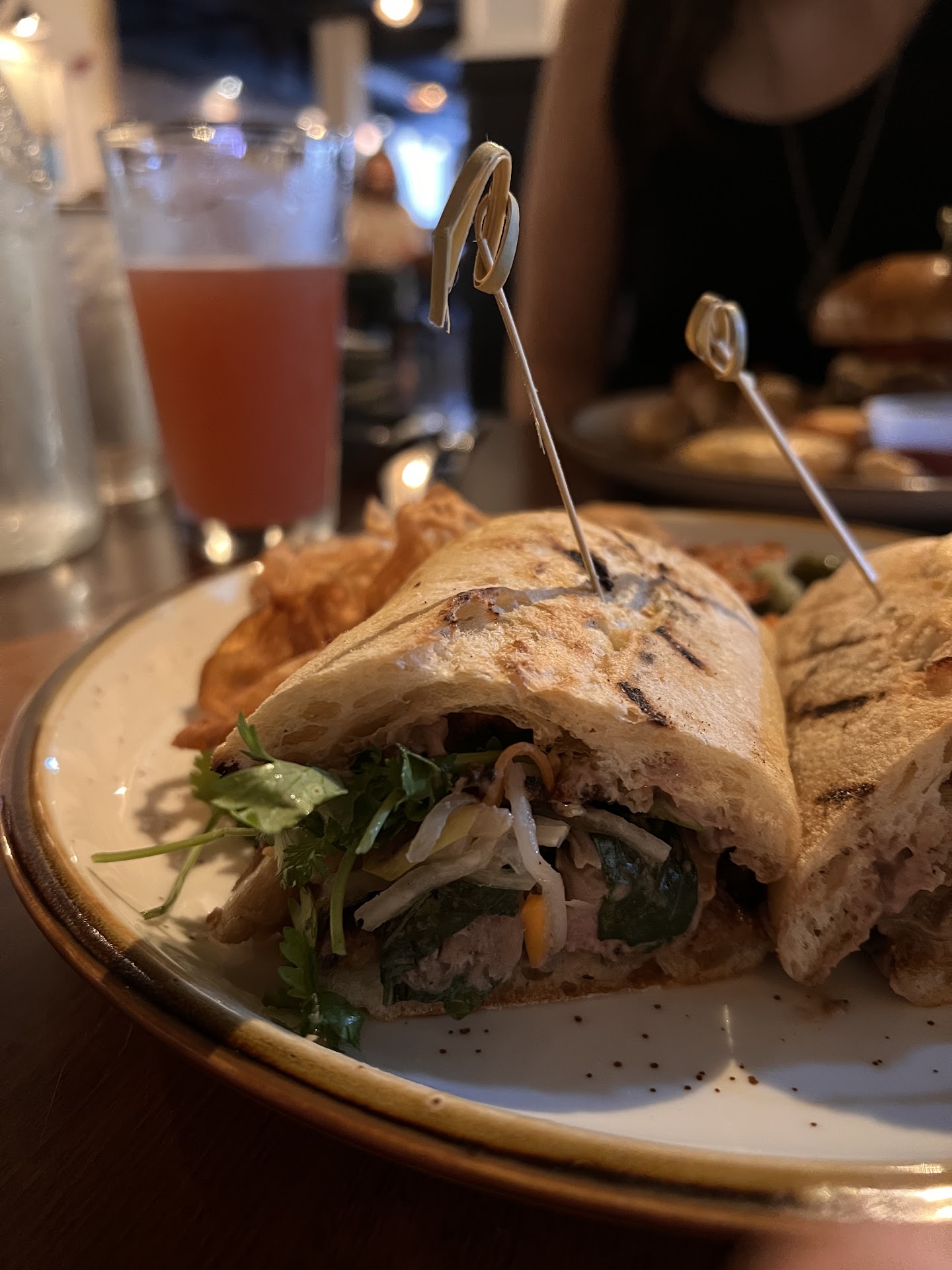 Our server brought us our cocktails holding the glassware from the top which contaminated the rims. Thankfully, they had straws so we chose not to send them back. She failed to add olives and asked us again if we had wanted them. Yes, we did. She brought them on a saucer without toothpicks. A martini there is something like $15? Get it right.