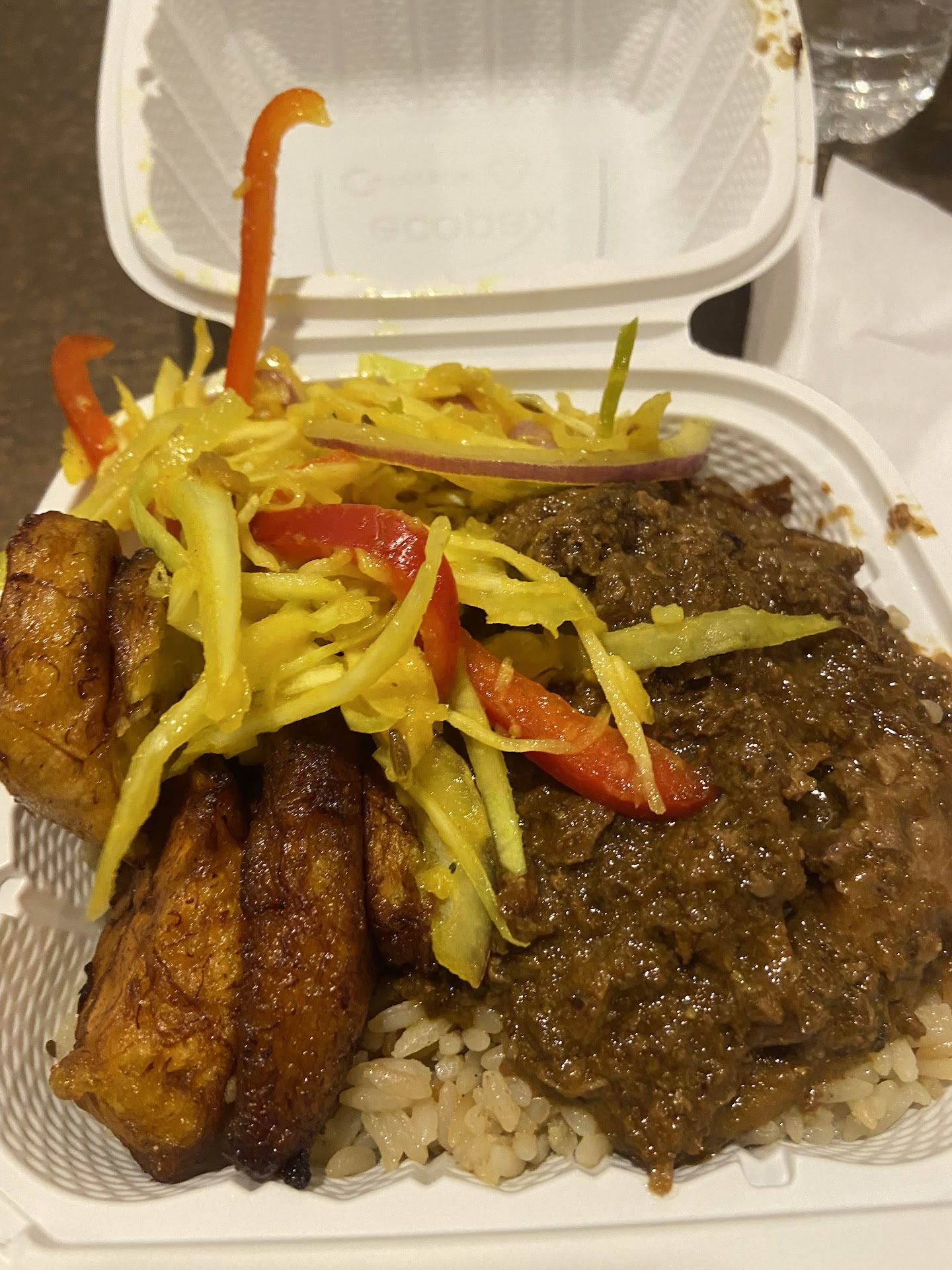 That lamb must have been marinating overnight. It was so tender and flavorful, it transported me to the best of places...wowie. The spices were on point...the lamb had a nice kick to it without tasting spicy. The coconut rice and sides complimented the lamb perfectly. 12/10. No crumbs left. Wiped clean. Would have licked the container in private.