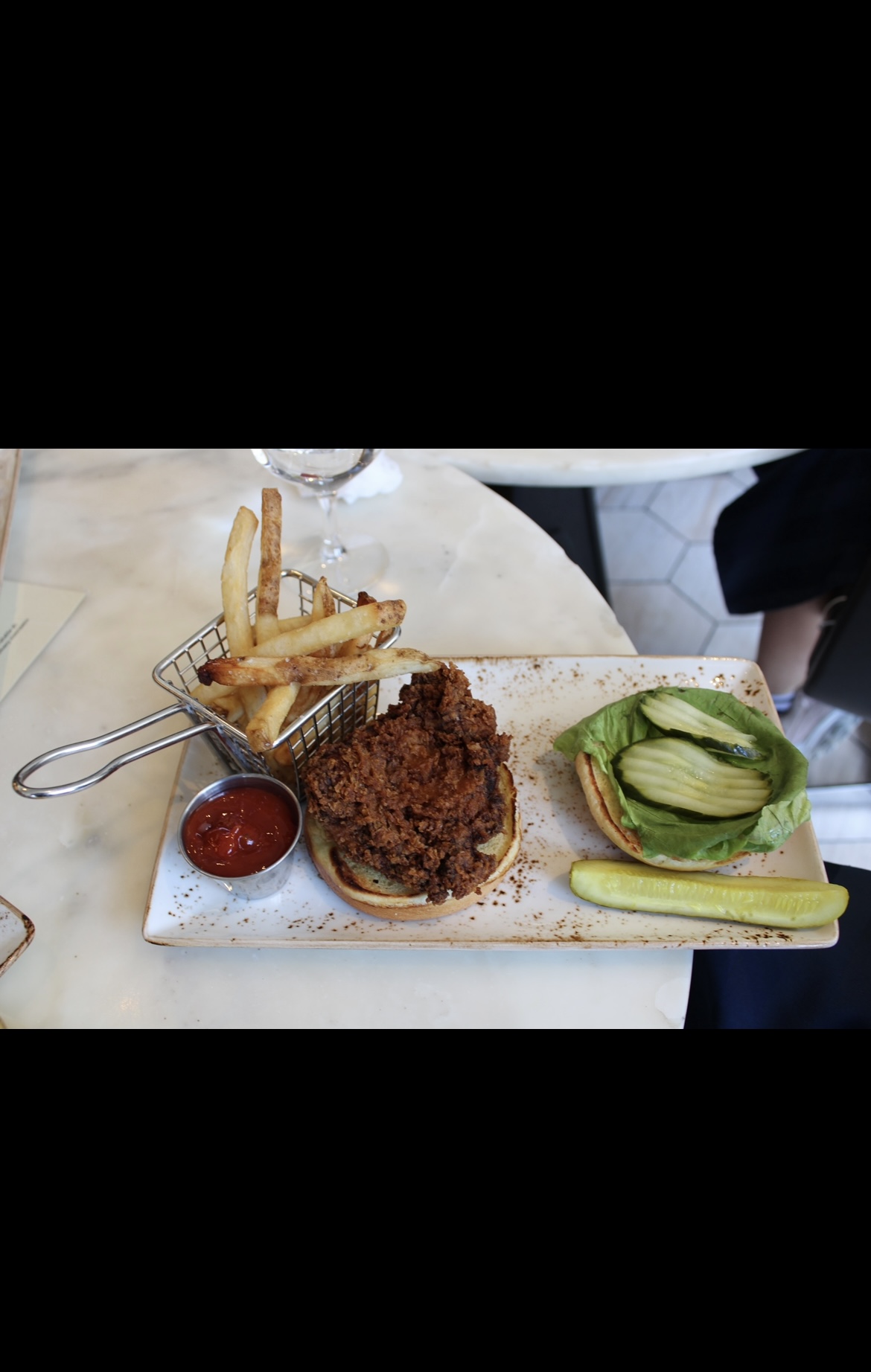 Next, the Crispy Fried Chicken Sandwich elevated comfort food to new heights with its buttermilk-fried chicken nestled beneath a mound of zesty jalapeno coleslaw and drizzled with spicy ranch aioli, all sandwiched between a toasted brioche bun. The harmonious blend of textures and flavors, accompanied by a side of perfectly cooked fries, made this sandwich a true delight for the senses.