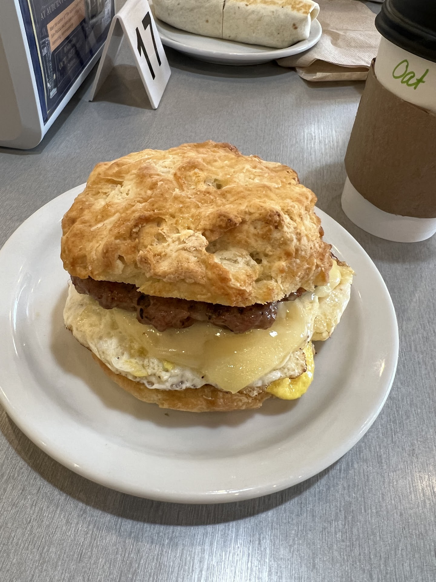 Downtown Auburn, NY has this tasty restaurants that I somehow missed in the three months that I've been staying here. The food was great. I got a breakfast sandwich that had real eggs on stretch bread onions, and cheese topped with a little bit of hot sauce and a chocolate peanut butter protein milkshake to wash it all down. The menu has a variety of options from food to lattes, milkshakes, cooler drinks and some quick grab N go snacks.