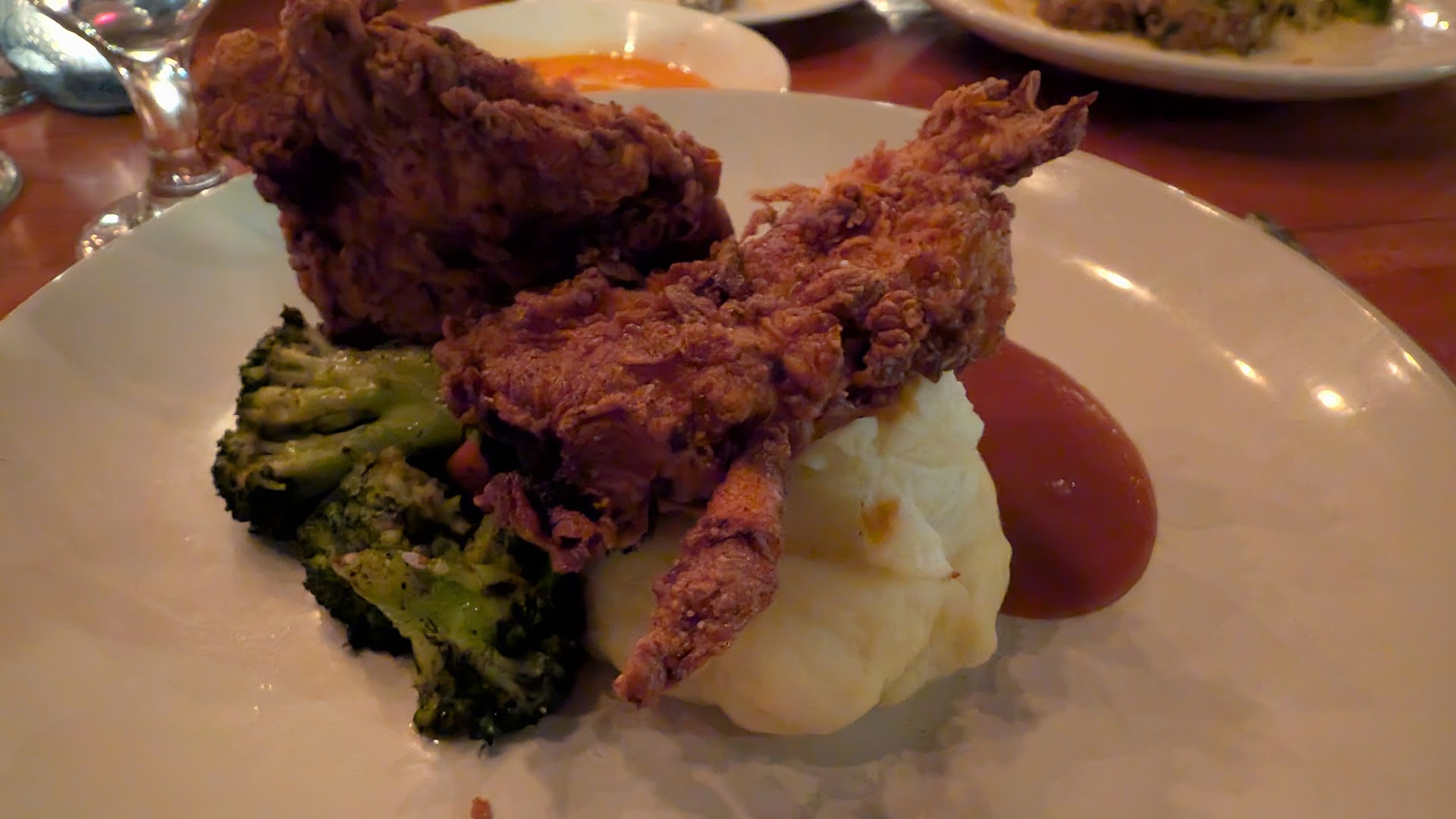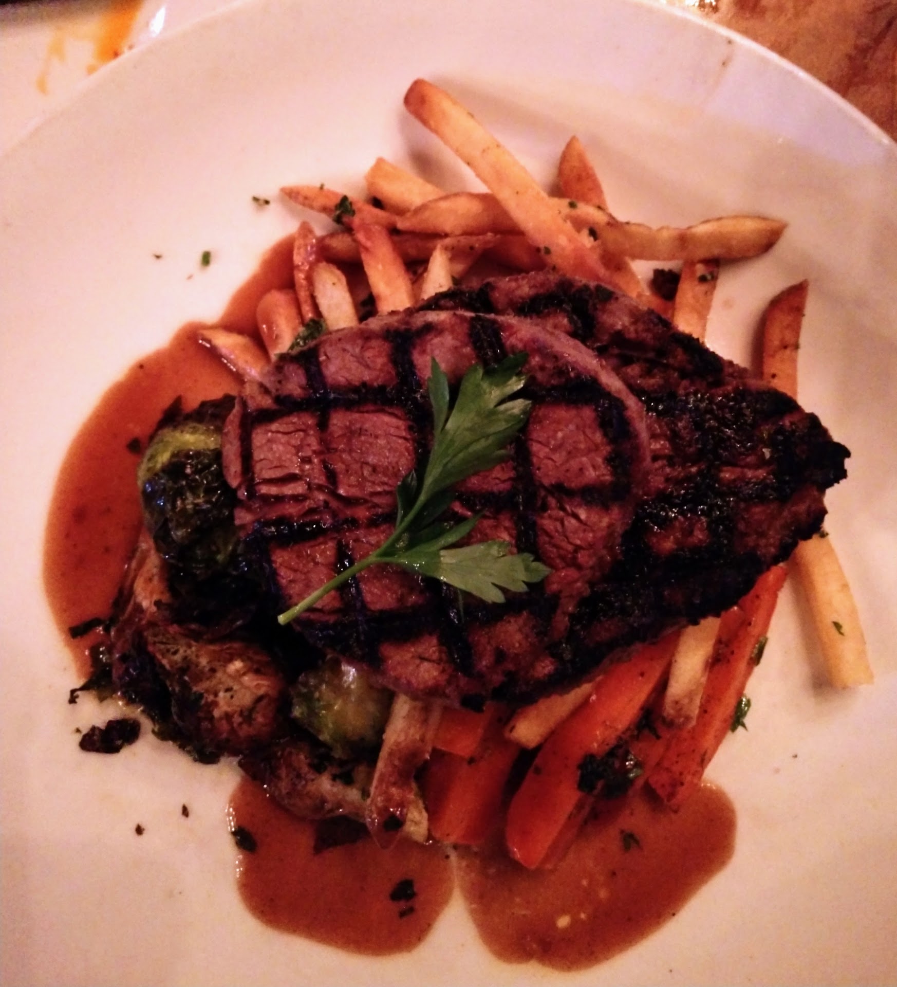 The first observation stems from an experience I had upon using the Men’s Room. I washed my hands with the hand soap and the overpowering scent of the soap lingered during the meal. I must say this is the first time of the many times I have dined out over the years that this has happened. My wife even commented that she could smell the scent from her seat. Additionally, while I used my dinner fork for the foie gras appetizer, in my opinion, an appetizer or salad fork should have been provided. I then had the Belgium Endive salad, which was very good, though I first had to call our server to the table for a fork to use and again, I was given a dinner fork. Further, we went through the entire meal, to the point of our entrées being cleared, before our water glasses were refilled, when two were empty and two were half empty. Lastly, each time a course was served, the food was brought to the table and “auctioned” off. My experience in fine dining would dictate that there should be a system in place that the server or manager would know which position should receive each dish.
