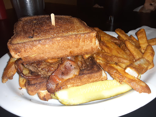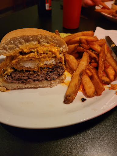 Read moreA outstanding place in the city of Batavia to have a burger. Many, many choices (there was at least over 20 choices). They even offer an all plant based burger! Veggie burger also. Not wanting a burger? They have wraps! They have chicken! They have fish! They will even have a crab cake served on a bun! Sides choices include mac salad, soup, chili, side salad and my favorite sweet potato fries. All burgers come with a good size serving of fries and good size pickle. My wife had the BOTM (burger of the month) which in celebration of the new coffee place opening next door this weekend, The Coffee Press, had the burger named after that. It had a coffee cinnamon spice with cheese and bacon with BBQ sauce on it. My daughter had the Omaha burger with came with onion rings on it. The waitress will ask you if the burger you want is to be cooked pink or no pink. So know what you want! None of that medium well stuff! Fully stocked bar - of course bourbon is served! (I'm not much a drinker and don't know my liquor so...) Our host and waitress were very nice and it was quite busy for a Friday night. The staff was working hard to make everything and everyone good and happy. They also have a dart game and a pool table. Overall, there is something for everybody. Specials offered for different nights of the week. Kids meals, adult meals, sports on TVs, good decor and good...