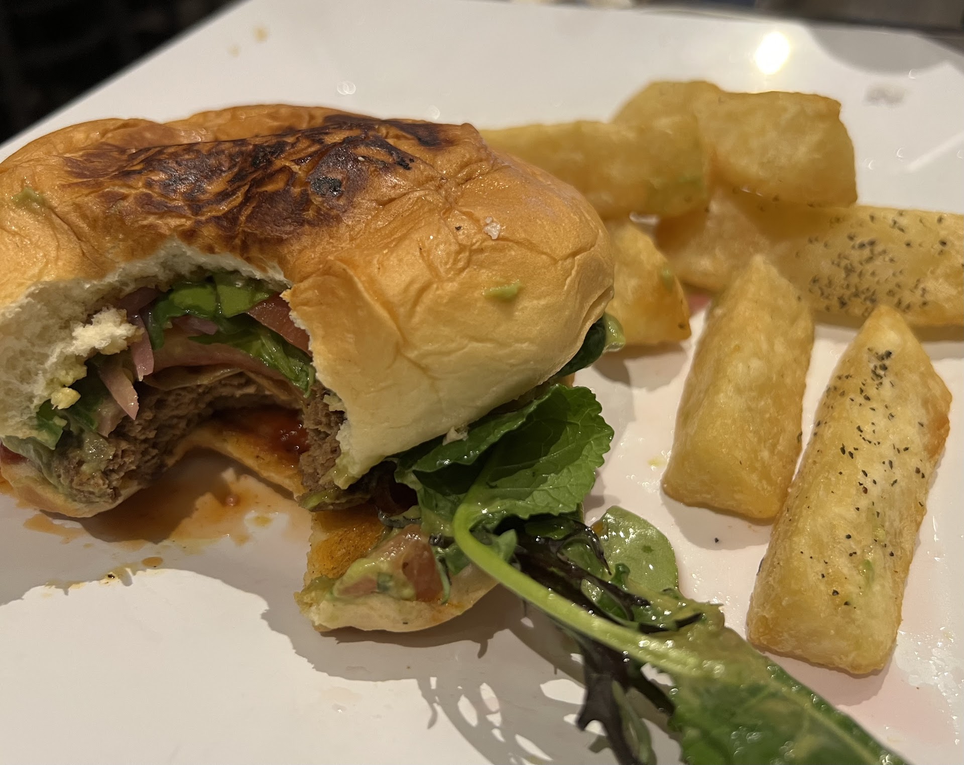 We've been here before and always when it is not busy, intentionally. A lot of the time it is crowded with young drunk guys with backwards baseball caps who like to stare at actual grown women in a creepy bro way. There is at times an air of desperation and cheap cologne hovering around it, which is fine. That being said the food and drinks were also just fine. Passable. Nothing to write home about. The last time however, our inattentive server put all the rusty dried up lettuce and discolored tomato pieces we had exhaustively taken off our plates and put to the side in the to-go styrofoam clamshell we brought home. Kind of missed the point there as we were too polite to point out someone in the BOH saw these fetid items and put them on our plates anyway! Wake up! Hello? Had to ask for napkins and cutlery, refills of water, generally disconcerting for a light night with only a couple tables occupied. Total hit or miss. My firm belief is that our server was out of training for their first job ever other than sitting desk at the junior college student union playing some dumb game on their phone... otherwise...