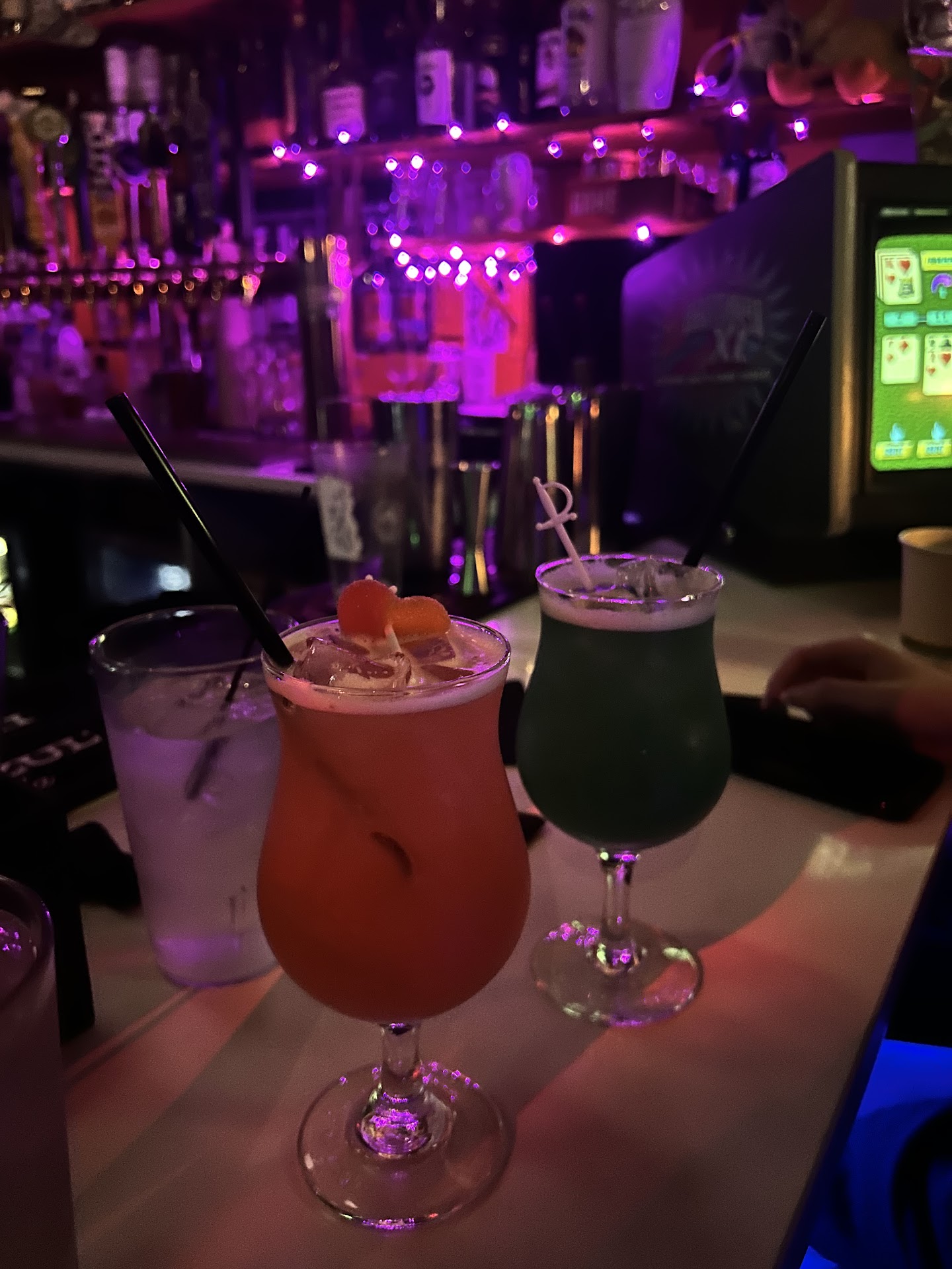 Drink variety is awesome! We tried the Pink Starburst, Danimals, and Apple Jax shots. Love the nostalgic, well thought out themed drinks. Me and my friend also got the Sex on the Koopa Troopa Beach and the Goo Lagoon (pictured). The drinks were great, worth the price. They come with a cute little candy but we ate those hehe.. They do have a limited selection of domestic beers and could probably expand this a bit.