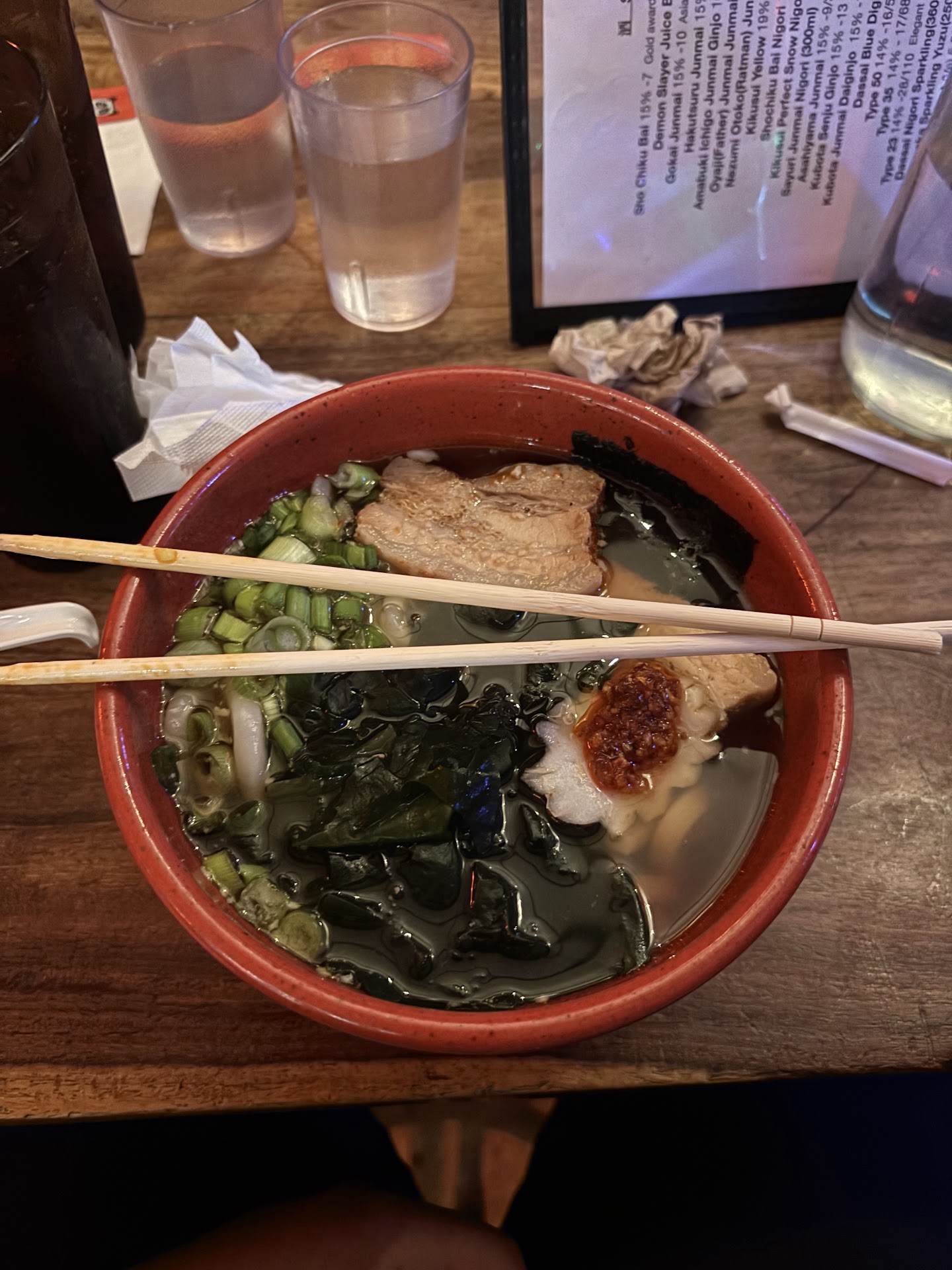 First go at their ramen.. I had to send it back as it literally had Zero taste. And I mean Zero! They forgot to put the miso in the broth!? I got my bowl back, I guess a table spoon of miso paste was dumped in there and was then returned. (If you know anything about making ramen broth, you know it takes days to make)