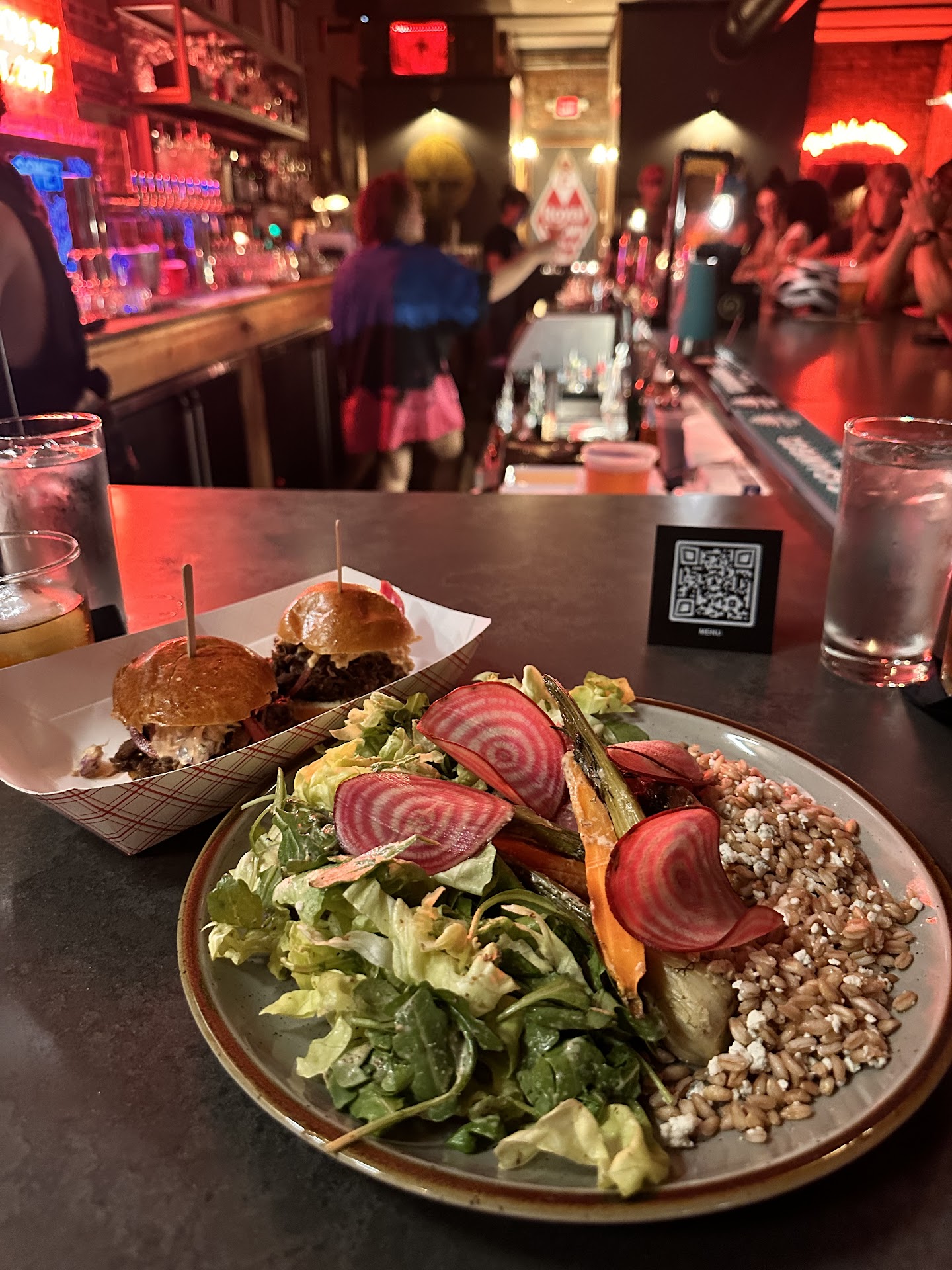 As soon as we walked in it was exactly what I could’ve imagined. A bar on the right with some awesome drafts. Long tables bar style. Records and more records everywhere. Oh, and PAC-MAN! Yes! They had little arcade game machines to play with for free. It doesn’t get better than this!