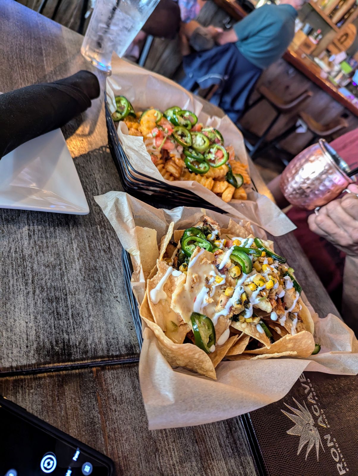 Read moreAtmosphere was nice, had an industrial look with cool decor on the walls. I ordered a $12 margarita, I believe it was a peach thyme marg. It did not taste like peach and it was way too sweet. I know a marg is supposed to be on the sweeter side but this was so sweet I couldn’t even drink it. I ordered Camerones la Diabla for my dish. We had a party of 7 and everyone’s food came out at different times, which was bizarre. My 2 sides were cilantro rice and beans. It was okay but the portions were kind of skimpy for a dish that costs $21+. The rice needed something, can’t put my finger on it, but it needed more flavor. The beans were fine…it’s hard to mess up beans. A person I was with ordered tortilla chips with a street corn dip and guacamole and those both tasted great. The chips were decent too. 3 people out of our party were unsatisfied with their food for various reasons. Overall, if this place had better prices I would consider returning but I will not because their prices do not line up with the quality of their product. They have the atmosphere down, I get the feeling they’re trying to go for a more hip vibe and they want to be more than just a Mexican restaurant, as they have wings and a burger on the menu. It’s a neat idea. I wish them luck and success but there are some kinks they need to iron out. With tip I spent $53 for a dish, a marg, and a corona and I was still hungry. That...