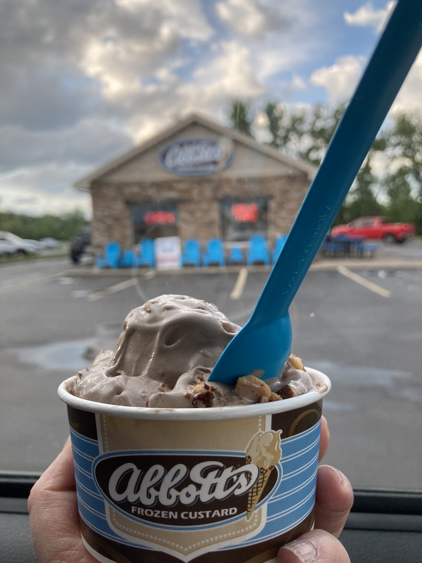 Read moreSo. Where to begin. I've been getting Abbots custard and shakes at locations around Rochester my whole life (am 38), grew up in Henrietta. However... yea no never again. First off it took literally 20min to get served at the drivethru. No one in front of us, several ppl behind us. We order an oreo milkshake. Splurge on the Monster size, $8. My GF, fresh out of surgery up the road here, really wanted a good milkshake. Lady taking our order says they don't have tops for the big size, can she put it in two small ones. No problem. Milkshakes come back. No whipped cream, only one straw for the two cups. Have to wait 2min before I can get an "excuse me" through the window to get her attention (still 3-4 cars waiting behind me). Before I can ask for the whip and a straw, my GF actually takes a sip. "This is aweful". I try it. It's like stale oreo crumbs floating in thin watery milk-like stuff. Not a shake. I've had a lot of shakes in my day. This was a terrible not-a-shake thing. We inform her that the shake is no good. She explains that's just how they are, that they can only add so much custard. Did I mention this shake* had the consistency of basically straight milk? I tell her we don't want them, can we get a refund. She says NO. Cause we sipped them. Now, clearly just improvising, she offers $5 back after I ask her a couple times if she's serious about no refund. Awkwardness ensues. We take a $5 bill and drive off less $3 with no milkshake for my GF with the sore, just-been-intubated-for-hours throat. Start driving home. She - still a little out of it from anesthesia - ends up crying about 15min later on the way home instead of enjoying a delicious custard shake.