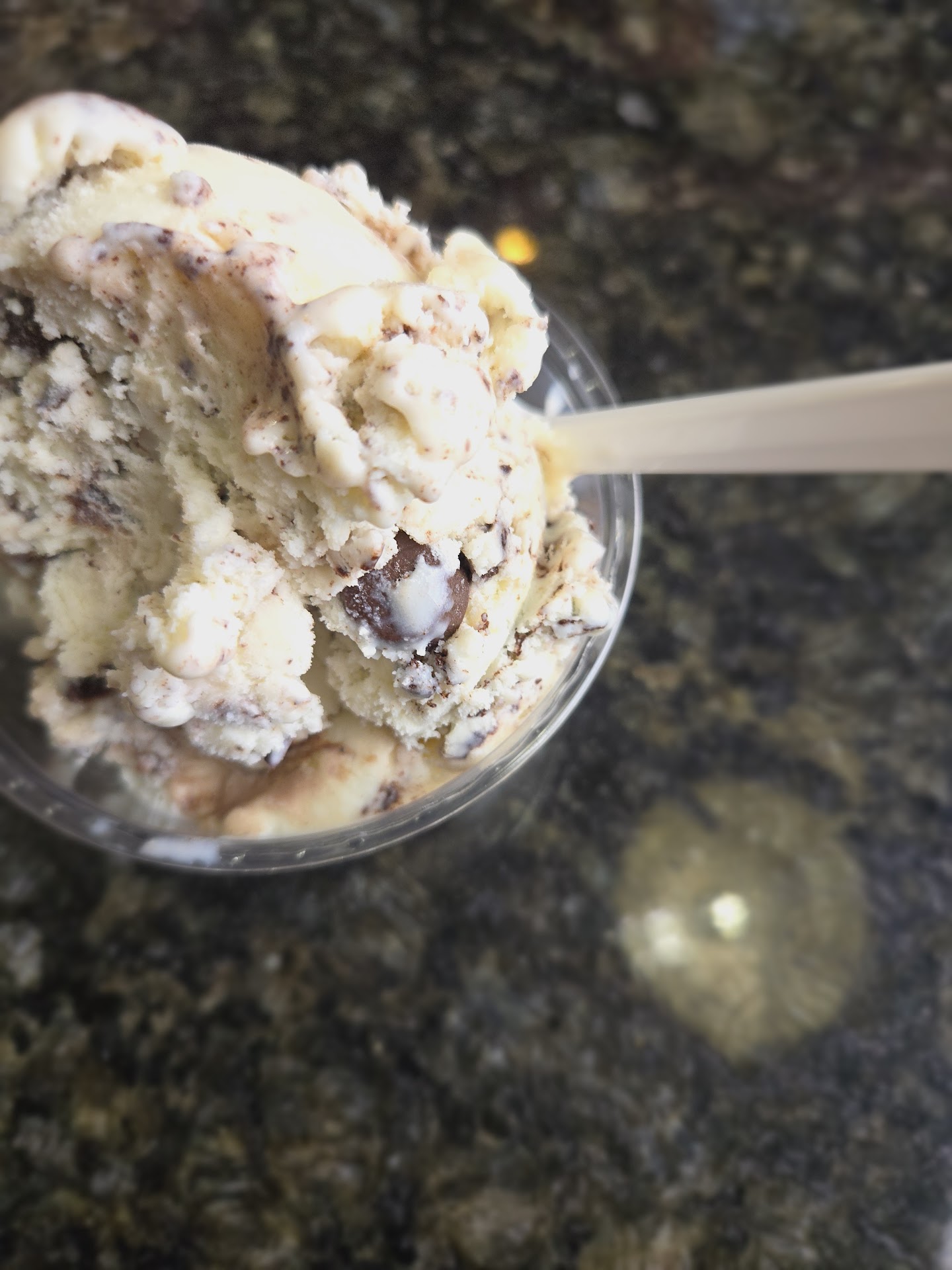 During my visit, I learned that they partner with companies to get their ice cream. They also sell a limited selection of baked items and food items. Their ice cream selection is seasonal, and they didn't have the Lilah's Irish Cream ice cream that I went there for. I was very disappointed. I ended up getting the Creme De Menthe, which is mint chocolate chip. It was yummy. I also got a slice of the quiche, which was very good, too.