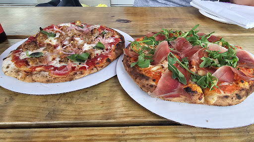 The location of this place is just about perfect to grab a little food to go hang out next to the lake and eat. This is the place you will go if you didn't make reservations to COHO, looking for something a tad more casual, and/or are still in your bathing suit. There is some indoor seating, but not too much with a few tables and a counter/bar type situation along the window. This is not the place for ambiance, in my experience, but that's fine. The people are all super friendly and the pizza is pretty darn solid. And they have booze... if you're into that kind of thing.
