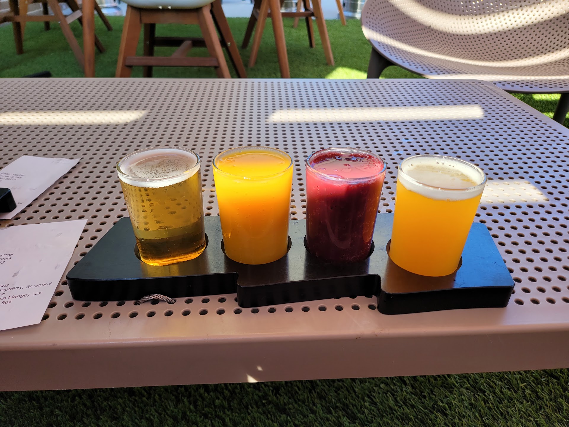 Read moreFirst visit. Invited by friends. They had a brunch special going on in the evening. They had avocado toast and different types of coffee and lattes. I am not a big beer drinker at all but I did try one of their strawberry mango I think passion fruit beers and their blueberry pineapple one as well and both did not taste like beer and they were delicious. The staff had really groovy tangerine looking shirts on. They have cool stickers and other items of staff which is kinda unique. The DJ that was playing had actual records and a really good selection of music. The outdoor patio is concrete but they have a section with the fake grass which looks really cool actually. They had little fire pits and the stand up heaters outdoors. I have driven by this place many times and never knew it existed. I will definitely...