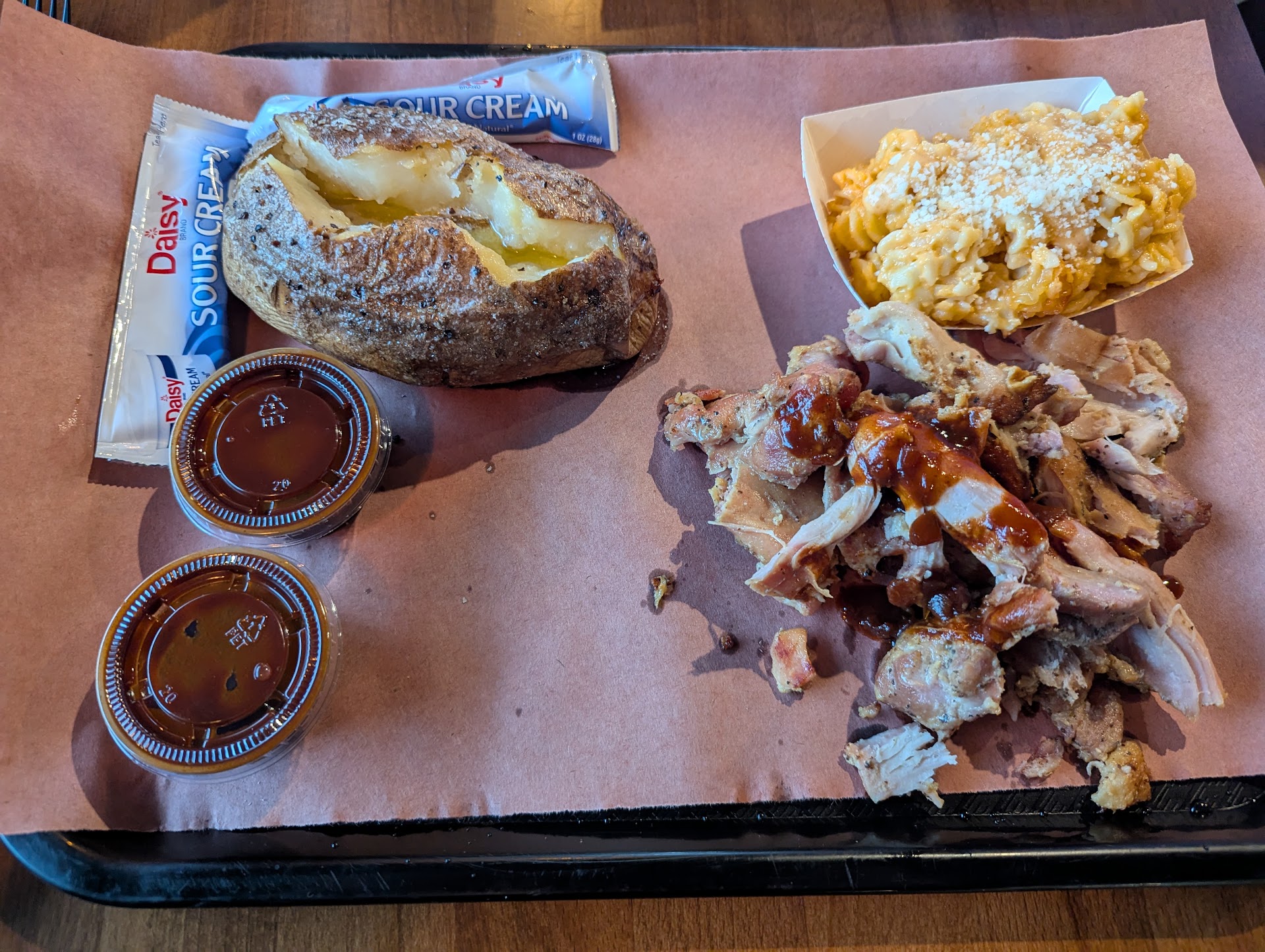 Read moreThis BBQ joint has 3 sauce choices. Mustard, Ketchup, and ketchup with some chopped garlic and onions though they have different names for them. They do not have any service to speak of even though it’s a sit down restaurant. You walk in and wait by the counter until the girl finally get off her phone and takes your order. They make you pay first before you can even take your seat and they force you to leave at least a 15% tip when you do. You go up to get your own food and need to get up to get anything like extra sauce or a drink refill. For napkins they have those crappy brown paper towels on a roll at each table. They have live music in a room that barely holds 25 ppl, and the ribs are a bit tough with a halfway decent dry rub comes with good baked beans a hard Mac n cheese that burned to the side of the pot like it wasn’t stirred. Food takes 20+ minutes to be ready. I think that’s...