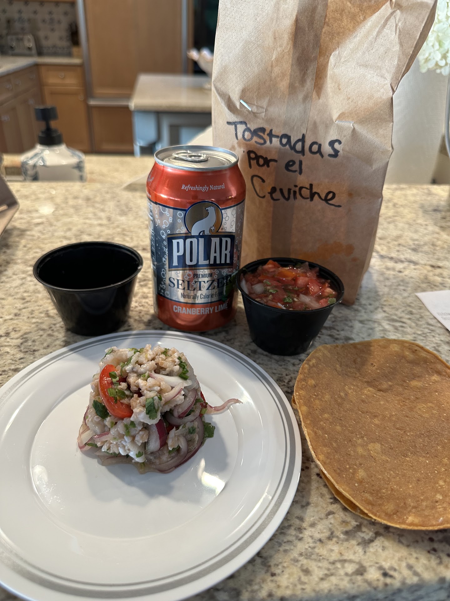 I ordered Pico de Gallo, Guacamole, and Ceviche del Dia from the Bocadillos section of the menu, as well as the Machete chicken quesadilla from the dinner menu. When I arrived home and opened the order, I was convinced there had been a mistake because my ceviche appeared to be missing. Upon calling the restaurant and speaking with a lovely hostess, I was informed that the order was indeed complete. To my surprise, the $15 ceviche consisted of a mere 4oz Solo condiment container, with the actual ceviche (fish and shrimp?) amounting to about 2/3 of that container—approximately 3oz. The remainder was filled with tomatoes and onions. While the flavors were very good and the fish appeared fresh, I was shocked by the minuscule portion.