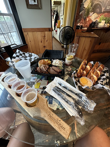 Read moreThis was my first time at Twisted Rail Brewing Company. It has an amazing location with great view right on the water. Good beer, my favorite one was 50 shades of red! Then the service aspect of my visit was awful. I understand servers have bad days. She didn't greet us for good 15 minutes. We ordered flights and waters to start. We received our flights and the server put down and didn't bother to tell us what beers were which and walked away.Then never brings our waters. We ask for a few napkins, never received those either. She doesn't return for a good 15 minutes then takes our food order. I walked inside to find the server stand to find napkins myself. While I was walking in she said " Oh that's your water on that table want to grab it take it out?" I wouldn't have minded grabbing it earlier in my visit. It was at the end after we asked a number of times for the water. Good beer, great location but...