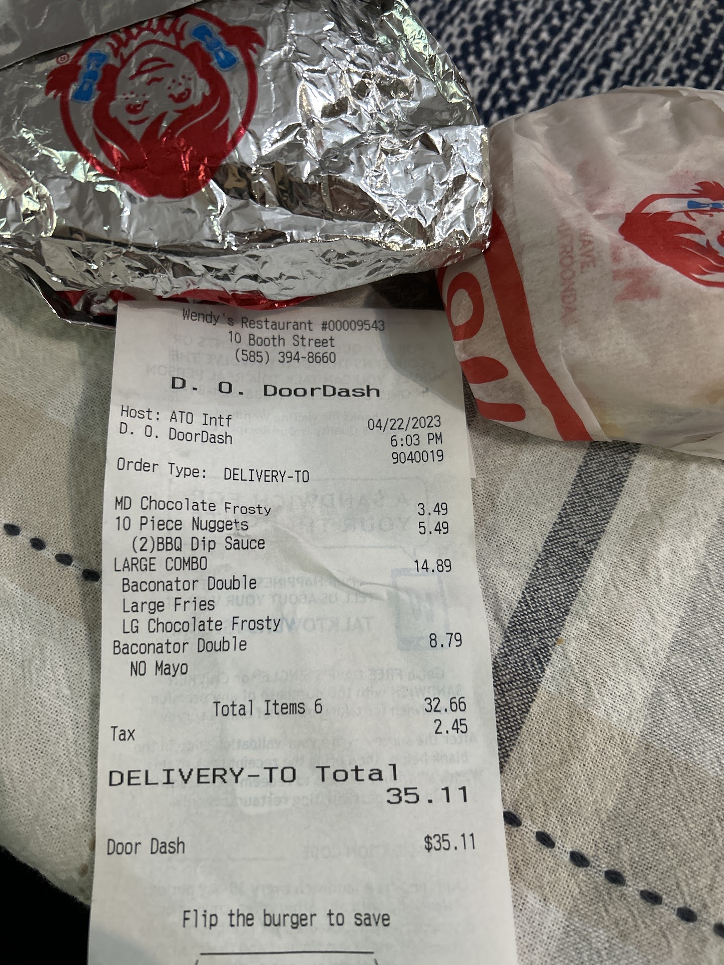 Read moreI paid almost 7 and some change close to 8 dollars for a baconator thats literally bun, mayo, and at best 2 slices of bacon in so much i could not even see bacon on it witch is shocking as the name would suggest lots of bAcOn.the breakfast are off the chain but 30 bucks for 2 quarterpound hamburgers meals with a few slices of bacon on top but the breakreakfast here is awesome and wont bank your bank i eat here at least 3 times a week minimum, and it's always perfect even when I was a few minutes late for breakfast. Did they tell me no? I think not. I did have to wait for a fresh piece of chicken, but let's be honest, I would have waited a lot longer because there maple bacon chicken croissant its the most mouth watering breakfast sandwich EVER I definitely recommend the one in Canandaigua the ladies...