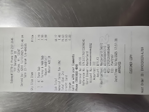 Read moreI came here with my son today and he little , he desperately needed to use the bathroom and my kids wanted subway. I went into the store with him and both bathrooms were locked. I went to the counter and waited for someone to appear, no one did. My son started the potty dance....I waited another min or two no signs of anyone .....I could hear noise but no one showed so I loudly said hello to try and get someones attention. A white older woman came out and in a rude tone told me that BOTH BATHROOMS WERE LOCKED AND THEY LOST THE KEY !!!! Thankyou because now a stressed mom who is always on the go i though I could kill 2 birds with 1 stone but instead this night became more stressful when I left they were dismissive. I left next store to the family dollar store and no bathroom there and then to buger king and finally my son got relief but now I still had to go all the way back for the kids dinner. They didn't even bother to come out and help me , they sent some young girl who also in a rude tone asked me if I was there to by something. This is the store in Cohoes NY subway 13778-0 PLEASE GET BETTER SERICE SO WE FEEL LIKE WERE WELCOMED WHEN ENTERING AND NOT A BURDEN AS CUSTOMERS WHO PAY WITH THIER HARD...
