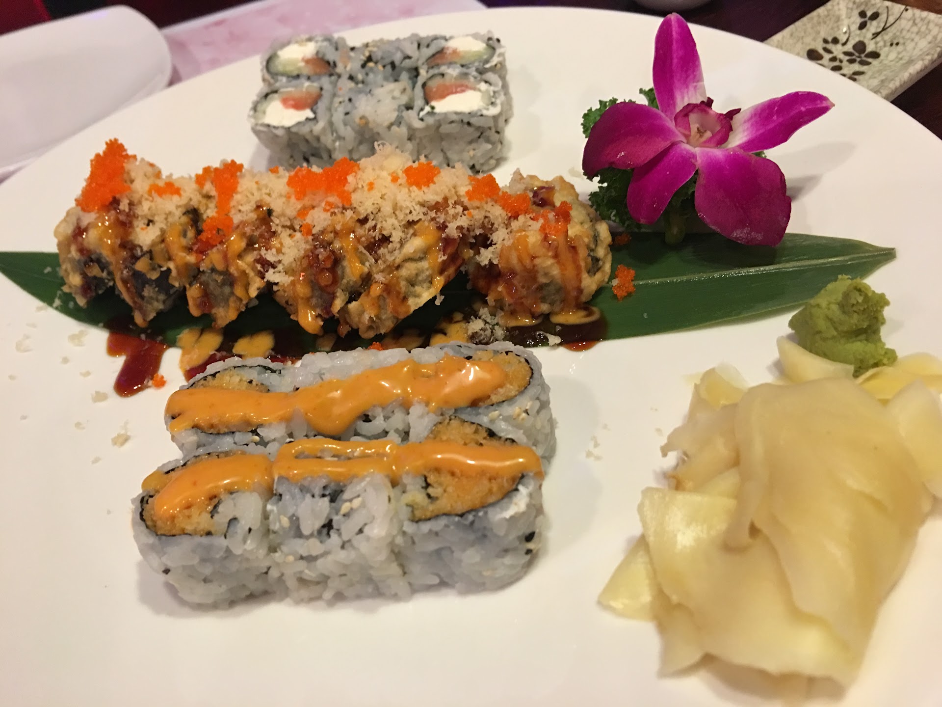 No noodles with the soup-maybe this isn't a thing here?, no hot mustard sauce with the spring roll, a pin drop of wasabi that barely covered one piece of sushi, questionable ginger that I couldn't eat, such low-grade plastic silverware that it failed at its function and no cookie, once again, maybe more Chinese than Japanese, but it's always an appreciated touch.