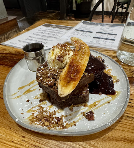 But, the physical setting is just prologue to the fabulously faceted food and beverage offerings. Today’s menu was limited in number, but extensive on taste. I had the Banana Bread Brûlée. I’m not qualified or fully capable of culinary commentary because I’m not at all a cook or baker. But, I love trying local and regional eateries and this is a gem. The banana bread was delicious, hot and served with homemade blackberry jam that was just the right mix of sweet and edgy tartness. Half of a banana accompanied the bread - split open and caramelized (the crunch!!) - and then there was this cinnamon pecan granola and locally sourced maple syrup… it was a taste and texture extravaganza that nonetheless made me feel like I was having all the best kept secrets of someone’s family kitchen. Comfort food right from the garden and the farm, cooked fresh, plated beautifully, and so tasty that it made me dance in my seat.
