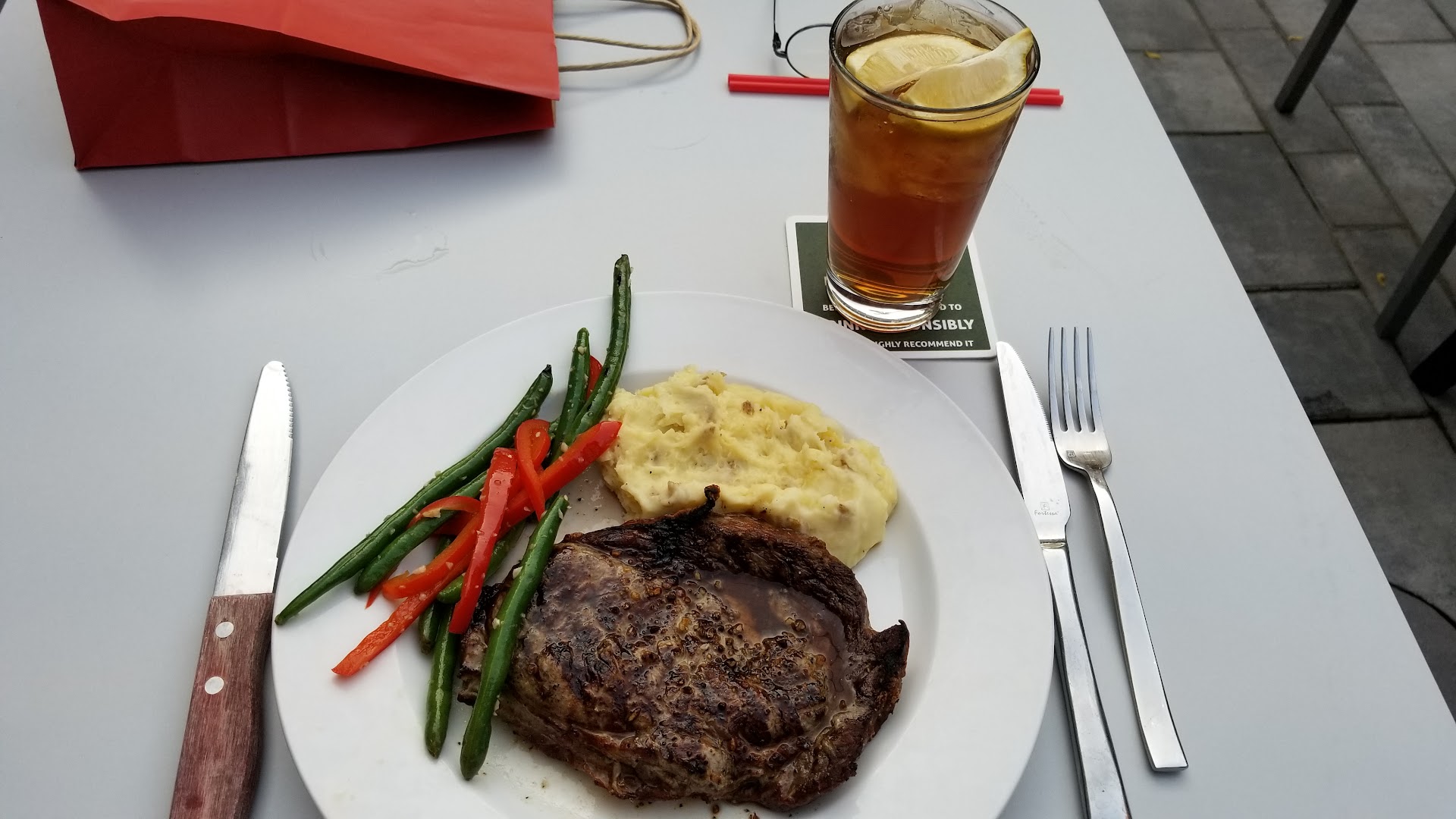 I ordered the Bacon wrapped Pork tenderloin with mashed potatoes. It was amazing I wish I could remember the sauce it came in!! It was very tender and cooked to perfection! Not to mention I love when a place puts a different spin on a dish. One of the downsides to living in a small area you will have trouble finding a lot of places that serve dishes outside the norm hence when I saw bacon wrapped they had me!